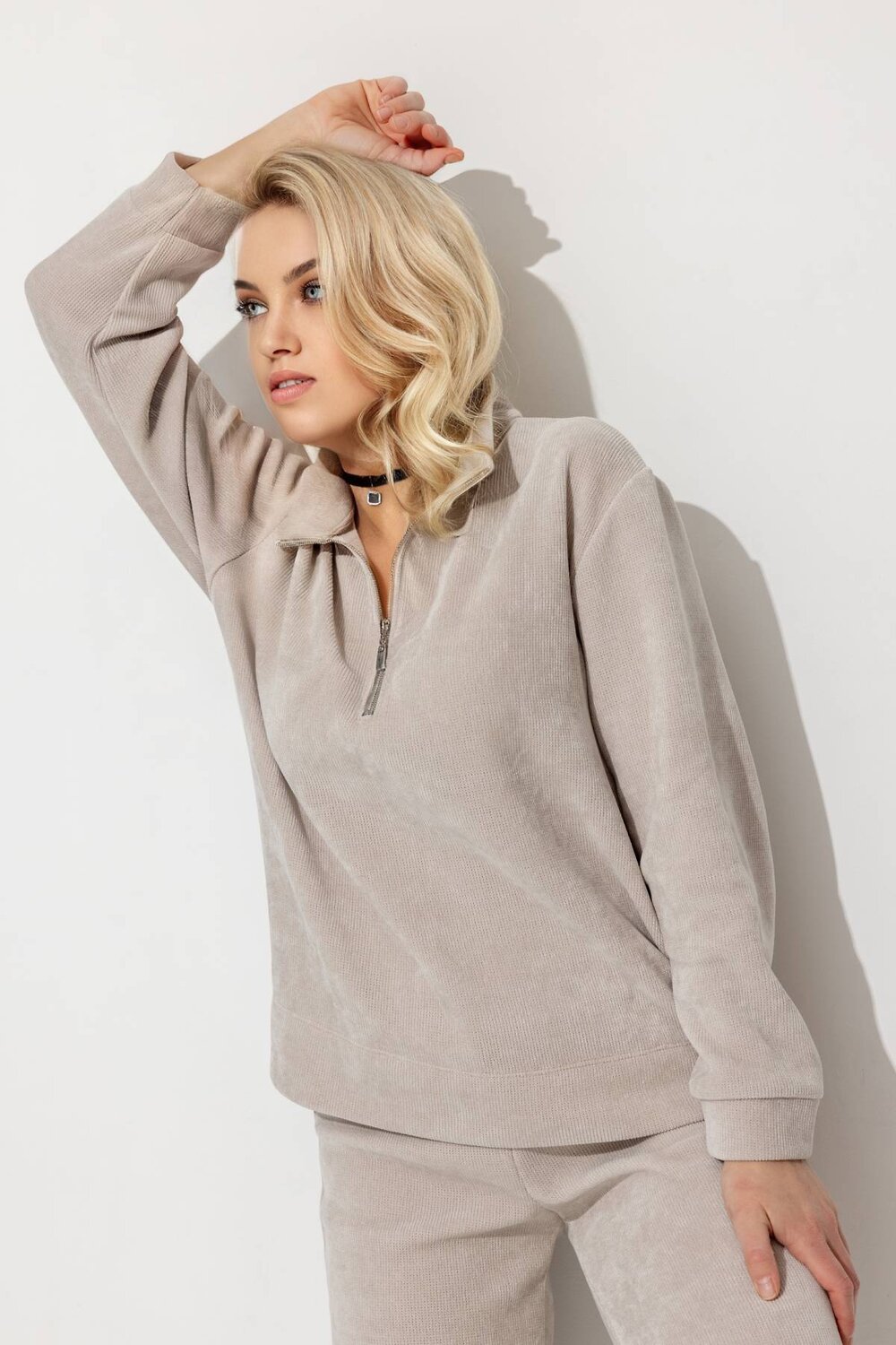 Блузка - толстовка из мягкого тактильно-приятного трикотажного вельвета. Хлопковая изнанка. Короткая функциональная молния из стойки. Блузка из хлопкового вельвета (можно собрать комплект с брюками артикул 153). Материал - трикотажный вельвет приятен к телу, мягко ложится по любой фигуре, не вытягивается, не затирается в процессе эксплуатации. Комфортная посадка дарит уверенность и ощущение свободы.