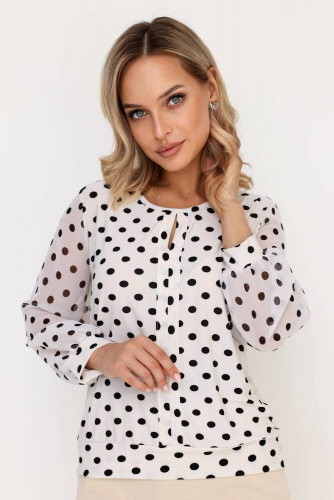 Блузка выполнена из трикотажного полотна, рукав - шифон. Воротник - хомут. Элегантно смотрится, легко стирается, не теряет и не меняет цвет. Так как в ткани используется большое количество вискозы, ткань дышащая и легко пропускает воздух, сохраняет форму и посадку даже после многочисленных стирок. Блуза представлена в ярких, современных и модных расцветках. Блузка станет неотъемлимой частью Вашего образа. Блуза прекрасно подходит для торжеств и повседневных мероприятий. Сочетайте блузу с брюками, юбками, и с любым типом обуви. Блузка бренда RISE - это стиль, качество и комфорт!