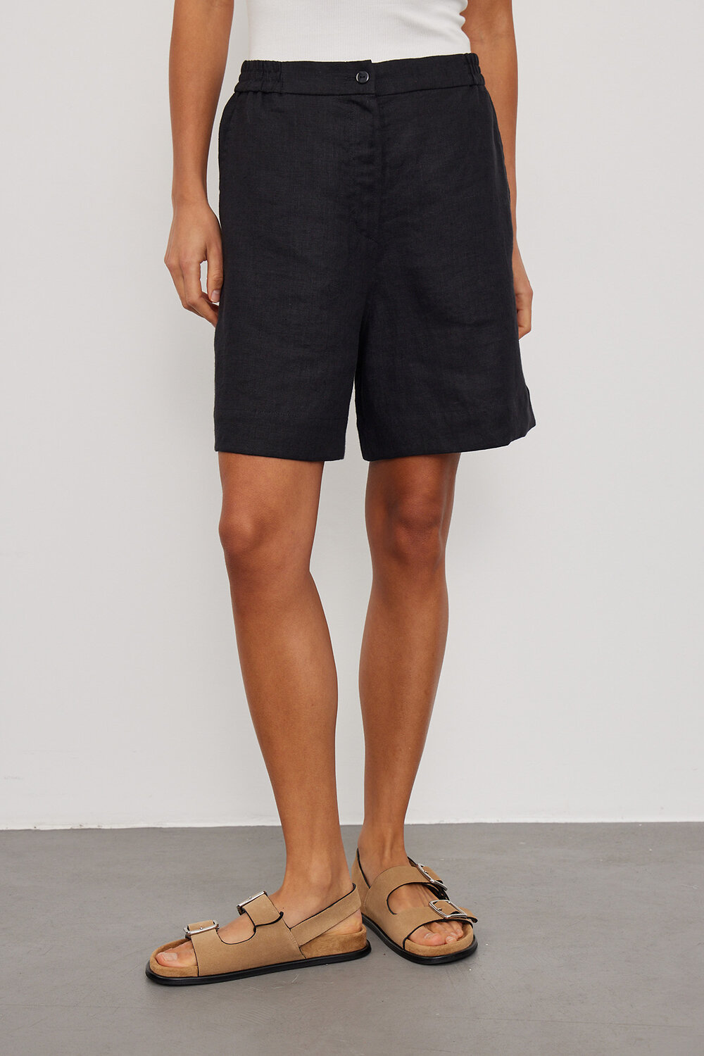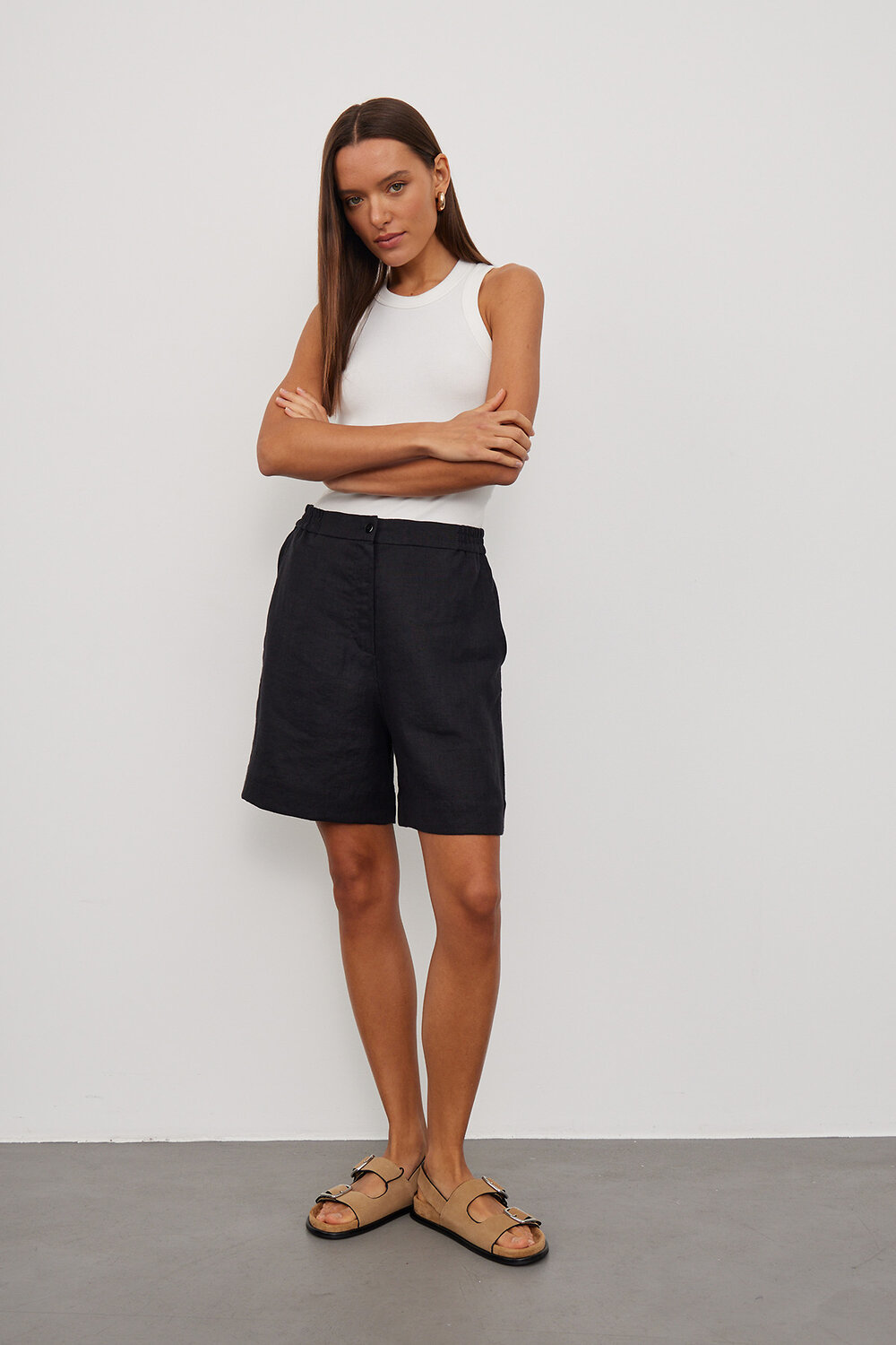 Шорты с высокой из натурального высококачественного льна, белого цвета , подойдут для создания непринужденного городского или домашнего образа. Шорты можно дополнить короткой или длинной рубашкой Ypsilon на пуговицах. Такой комплект—идеальный вариант для тех, кто ценит качество и минимализм. Сделано в России на собственном производстве. Черный
