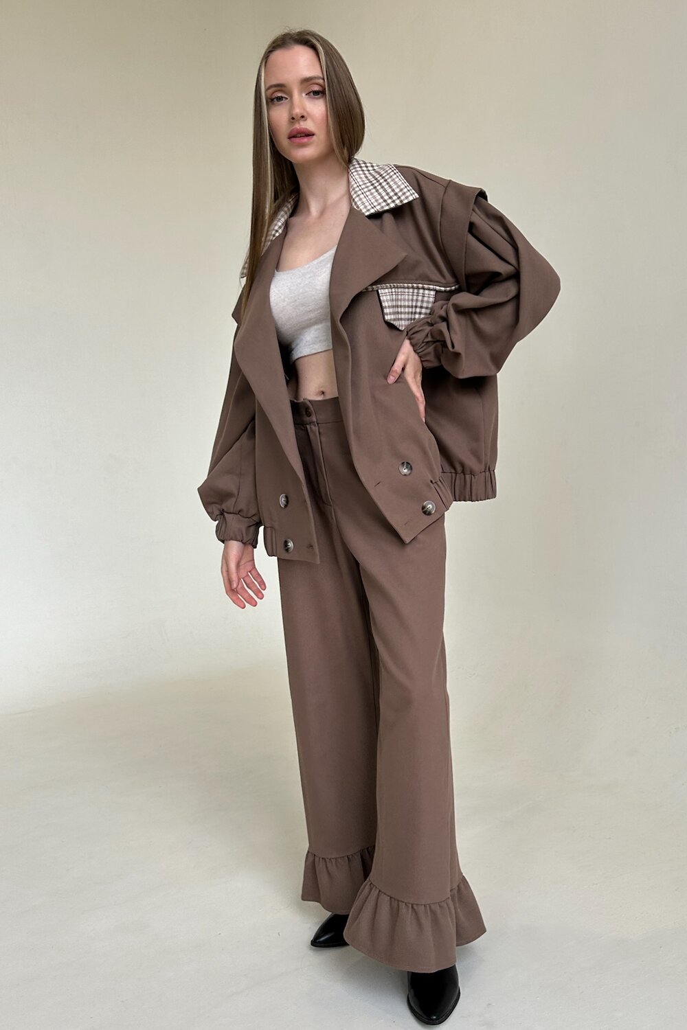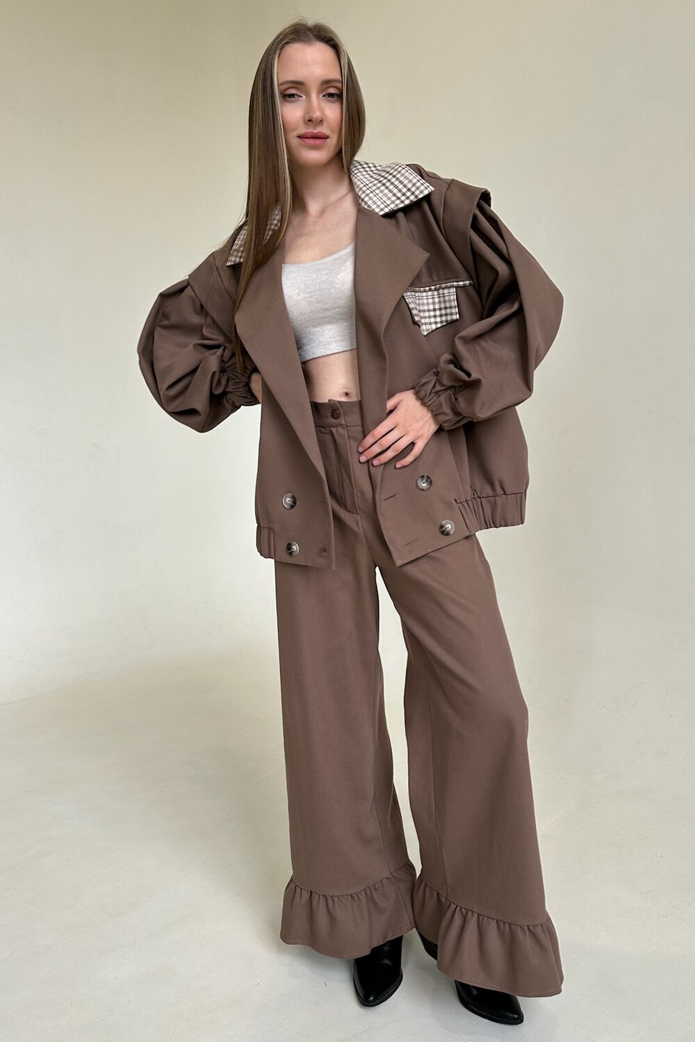 Длина жакета 58 см. Рост модели 172 см.