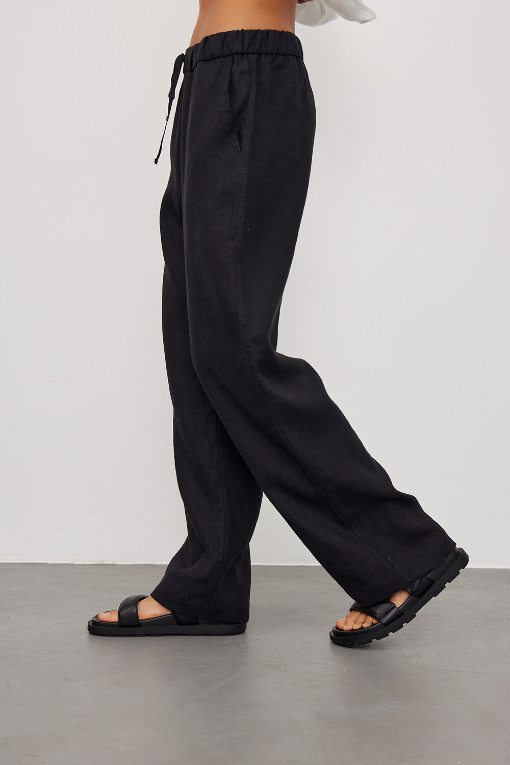 Брюки из натурального высококачественного льна, чёрного цвета , подойдут для создания непринужденного городского или домашнего образа. Брюки можно дополнить короткой или длинной рубашкой Ypsilon на пуговицах. Такой комплект—идеальный вариант для тех, кто ценит качество и минимализм. Сделано в России на собственном производстве.