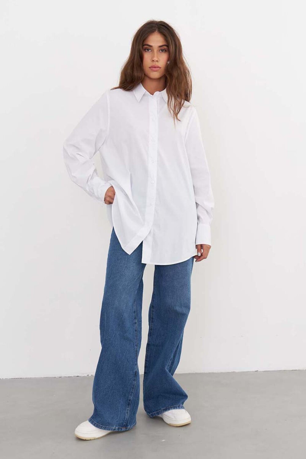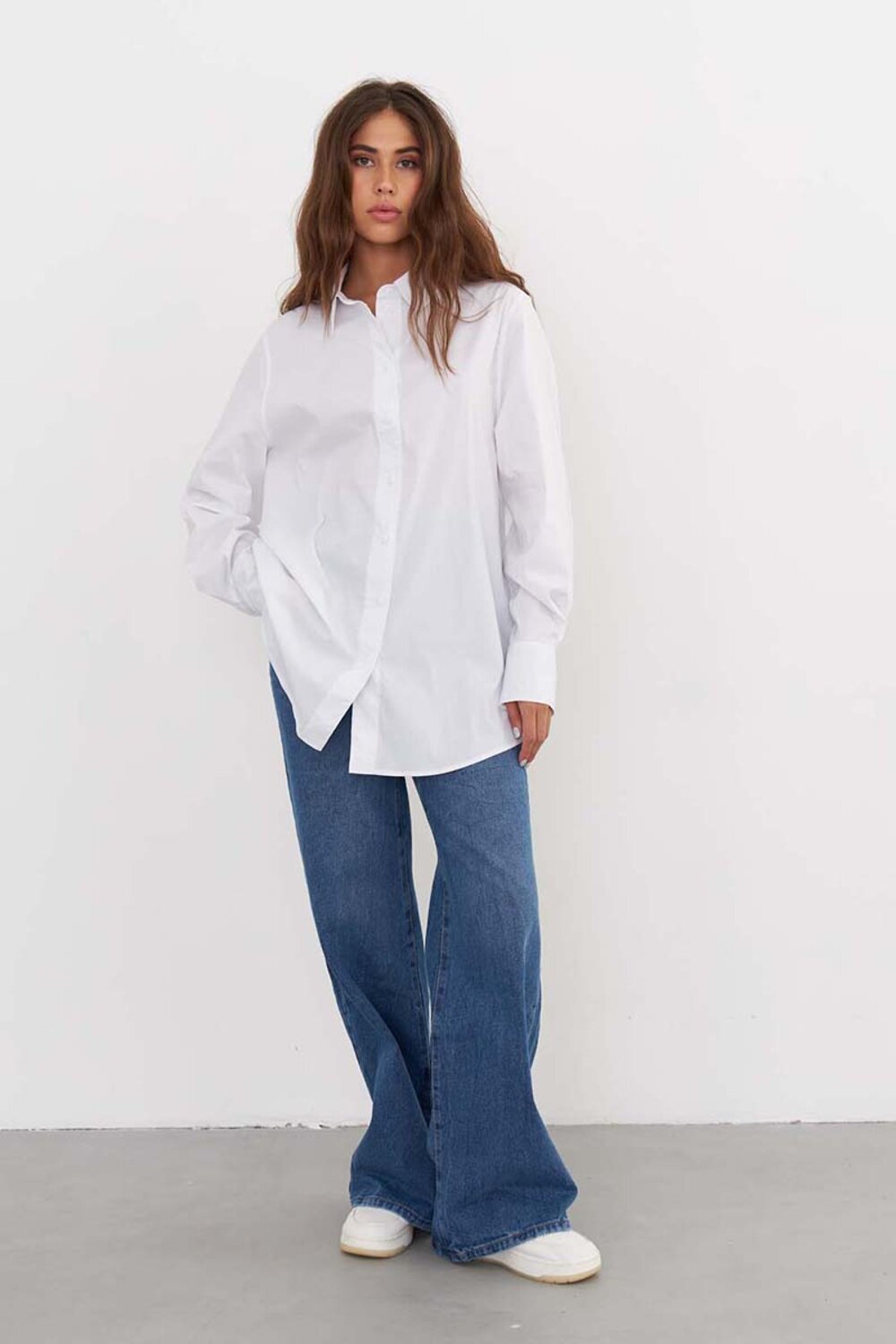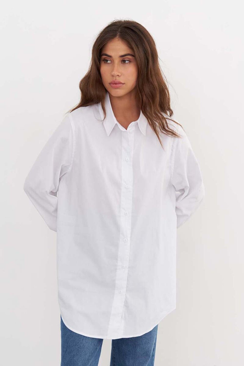 Качественная женская рубашка из хлопка свободного кроя, чисто белого цвета, с кокеткой на спине, и разрезами по бокам. Рубашка подходит как для офиса, так и для повседневных образов. Рубашку можно носить как блузку, а можно носить как второй слой поверх футболки или топа. Сделано в России на собственном производстве.