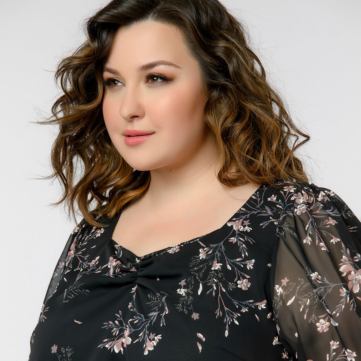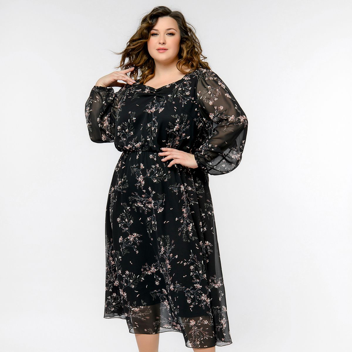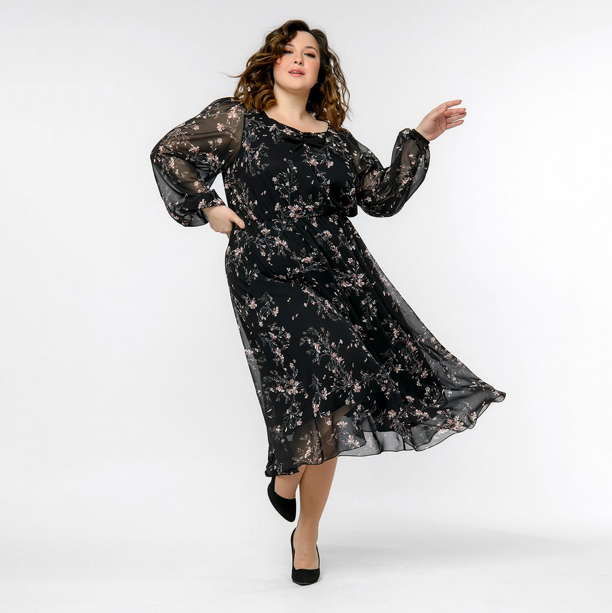 Романтичное платье из шифона, принт "пудровые цветы на черном"