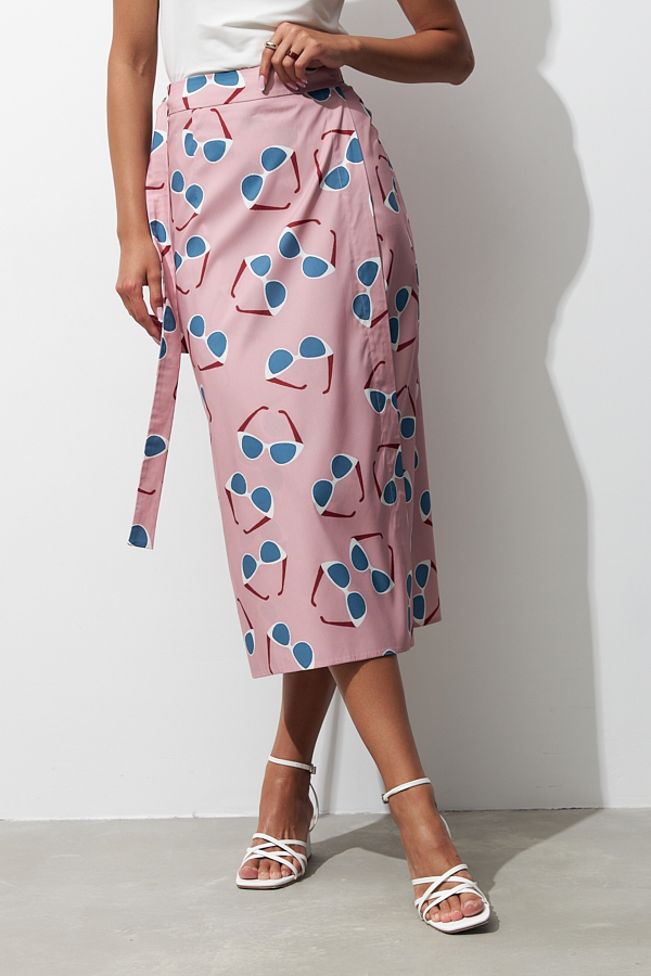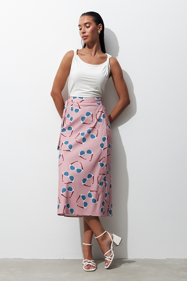 Юбка с запахом на широких завязках из вискозной ткани. Прямой силуэт с притачным поясом. Изделие с запахом не только выглядят интересно, но и делают фигуру более гармоничной.