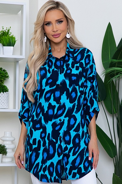 Рубашка свободного силуэта из комфортного,вискозного текстильного полотна с отложным воротником на стойке и центральной застежкой на пуговицы.Ремень в комплект не входит.