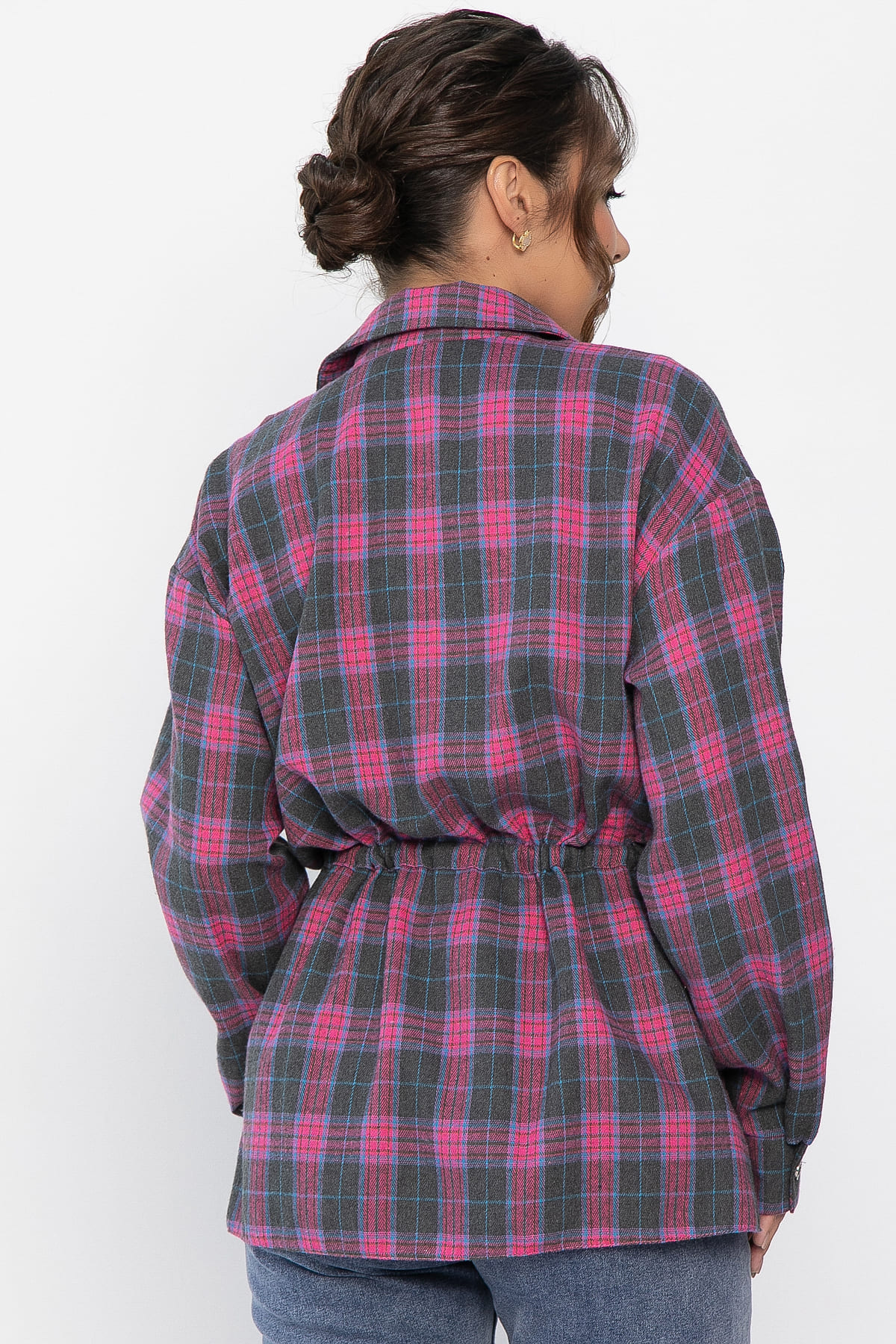 Рубашка в клетку в розово-сером цвете станет стильным акцентом в вашем гардеробе, позволяя экспериментировать с разными образами. Её можно носить как самостоятельный элемент или использовать в многослойных ансамблях. По бокам есть разрезы. Рубашка с воротником-стойкой и аккуратной застежкой на пуговицы выглядит современно и элегантно. Спущенное плечо добавляет расслабленности, а кулиска на талии подчеркивает фигуру. Создайте свой уникальный стиль с нашей новой клетчатой рубашкой!