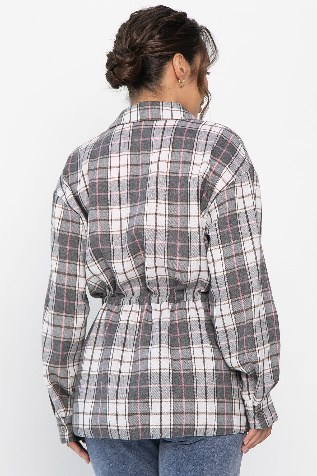 Рубашка в клетку в серо-коричневом цвете станет стильным акцентом в вашем гардеробе, позволяя экспериментировать с разными образами. Её можно носить как самостоятельный элемент или использовать в многослойных ансамблях. По бокам есть разрезы. Рубашка с воротником-стойкой и аккуратной застежкой на пуговицы выглядит современно и элегантно. Спущенное плечо добавляет расслабленности, а кулиска на талии подчеркивает фигуру. Создайте свой уникальный стиль с нашей новой клетчатой рубашкой!