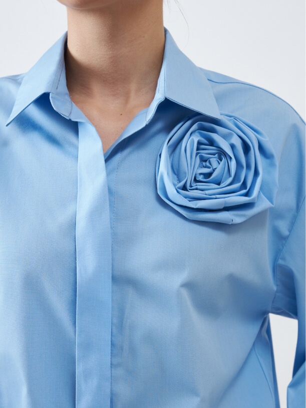 Стильная рубашка бренда VALS – это идеальное сочетание элегантности и удобства. Украшенная модным цветком на груди, она придаст вашему образу изысканности и свежести.