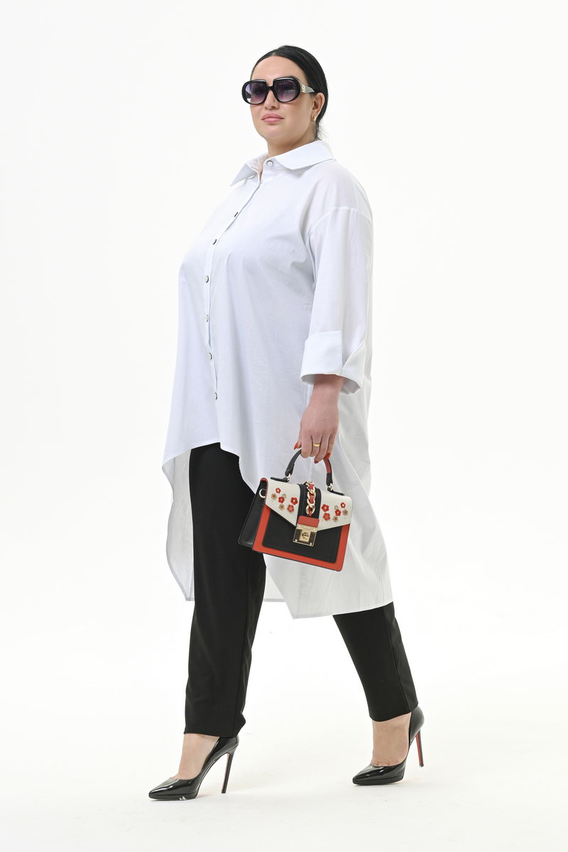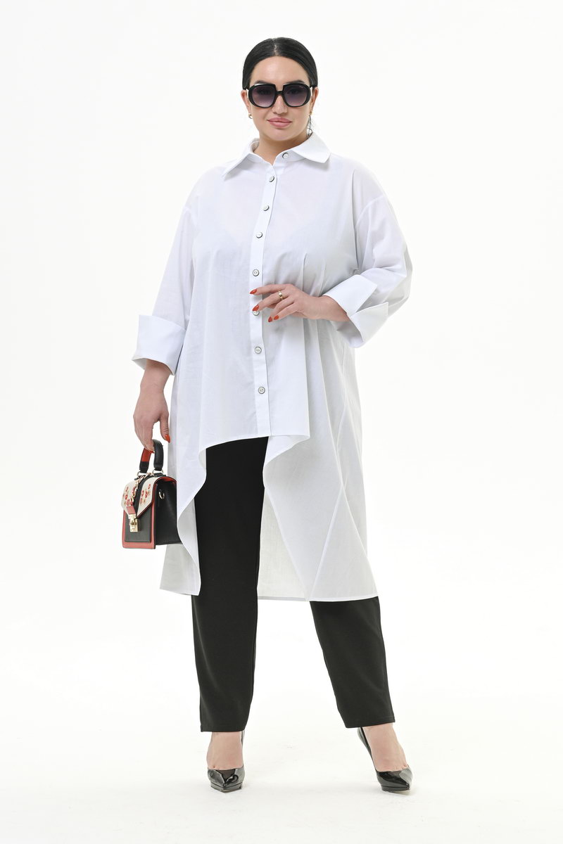 Рубашка с фигурной линией низа из хлопка, белая
