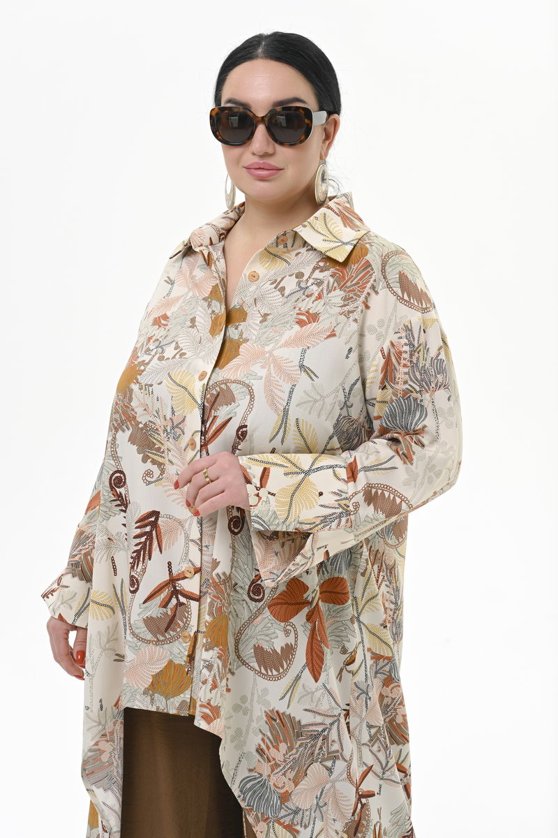 Рубашка с фигурной линией низа из вискозы, принт бежевый *