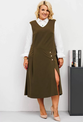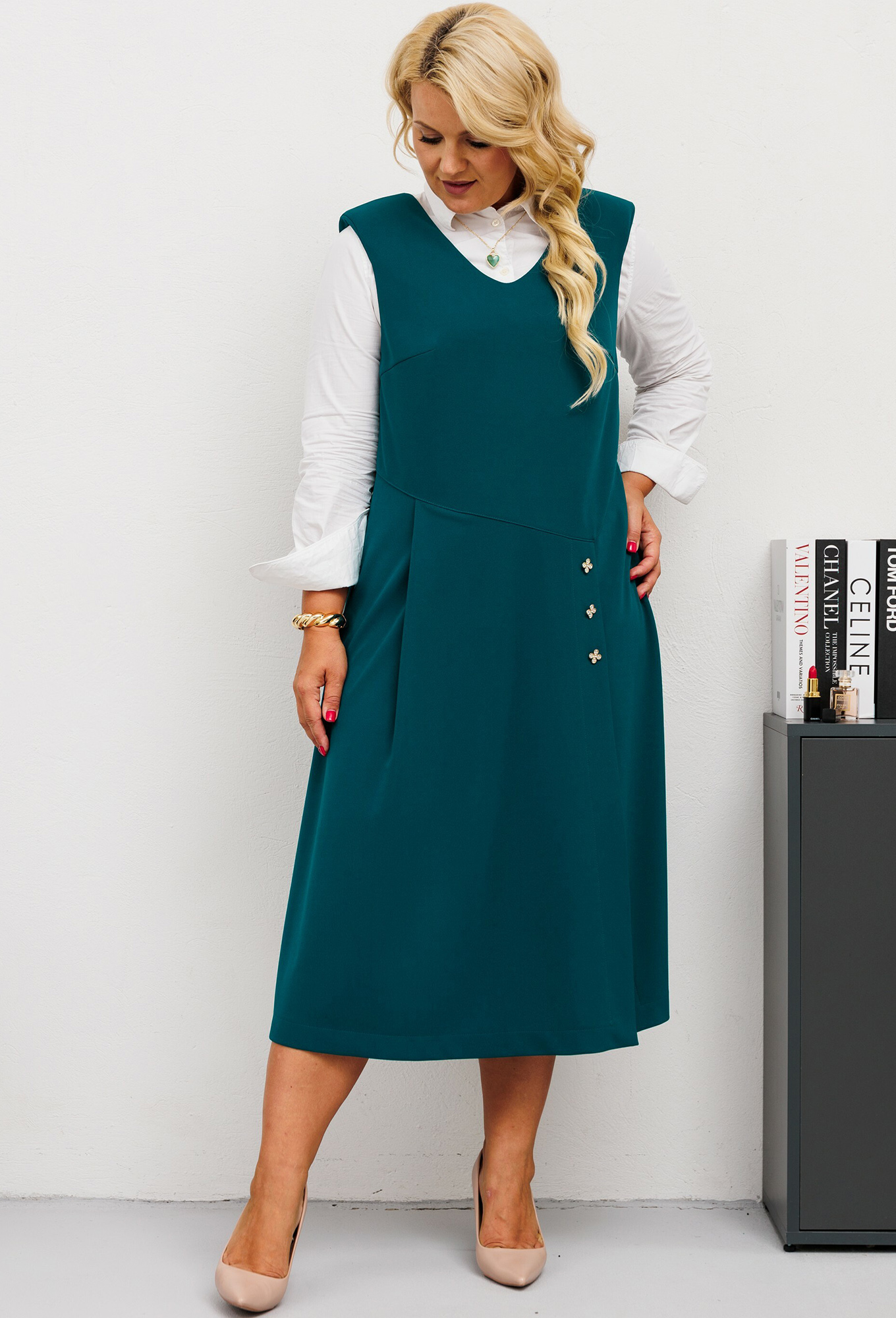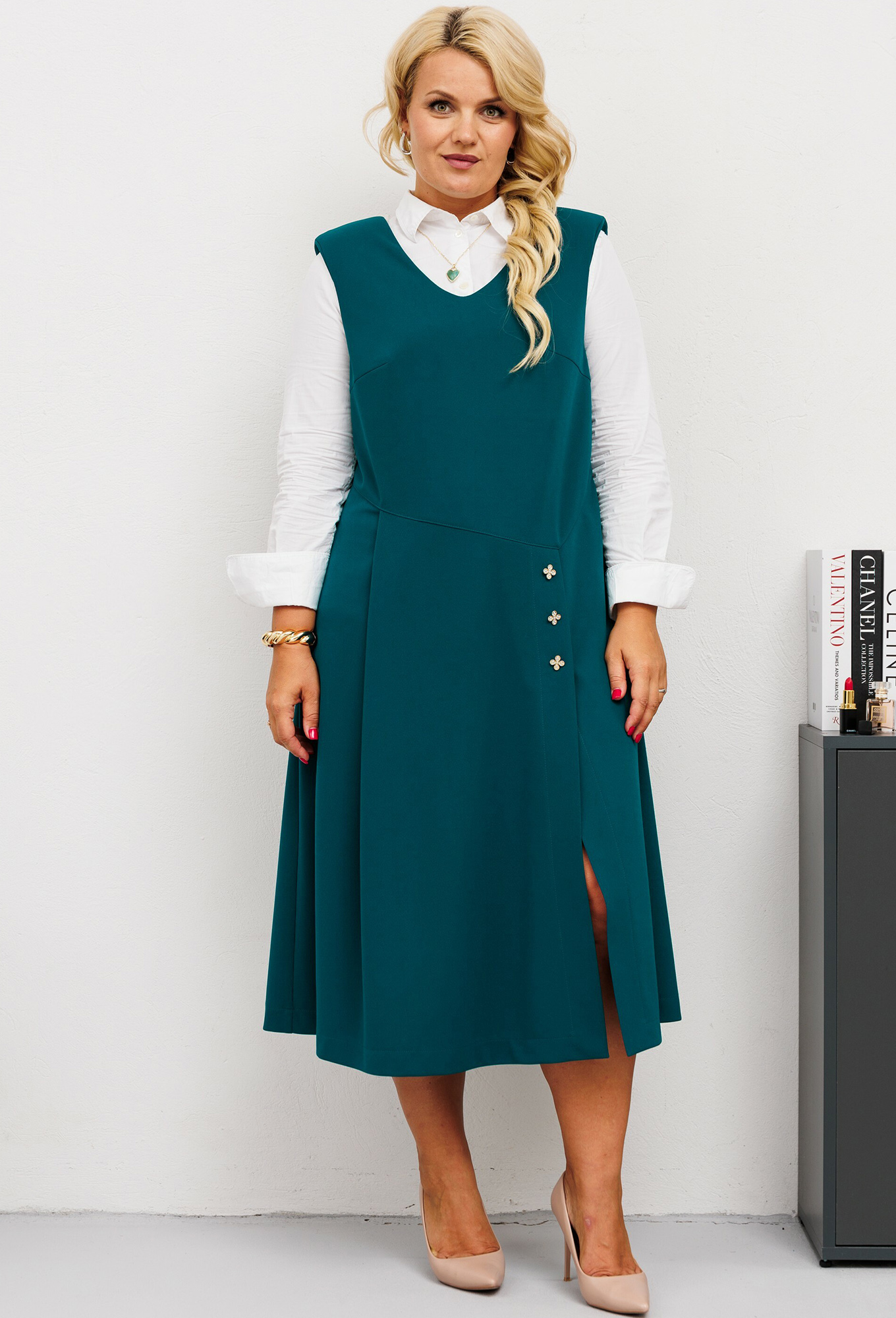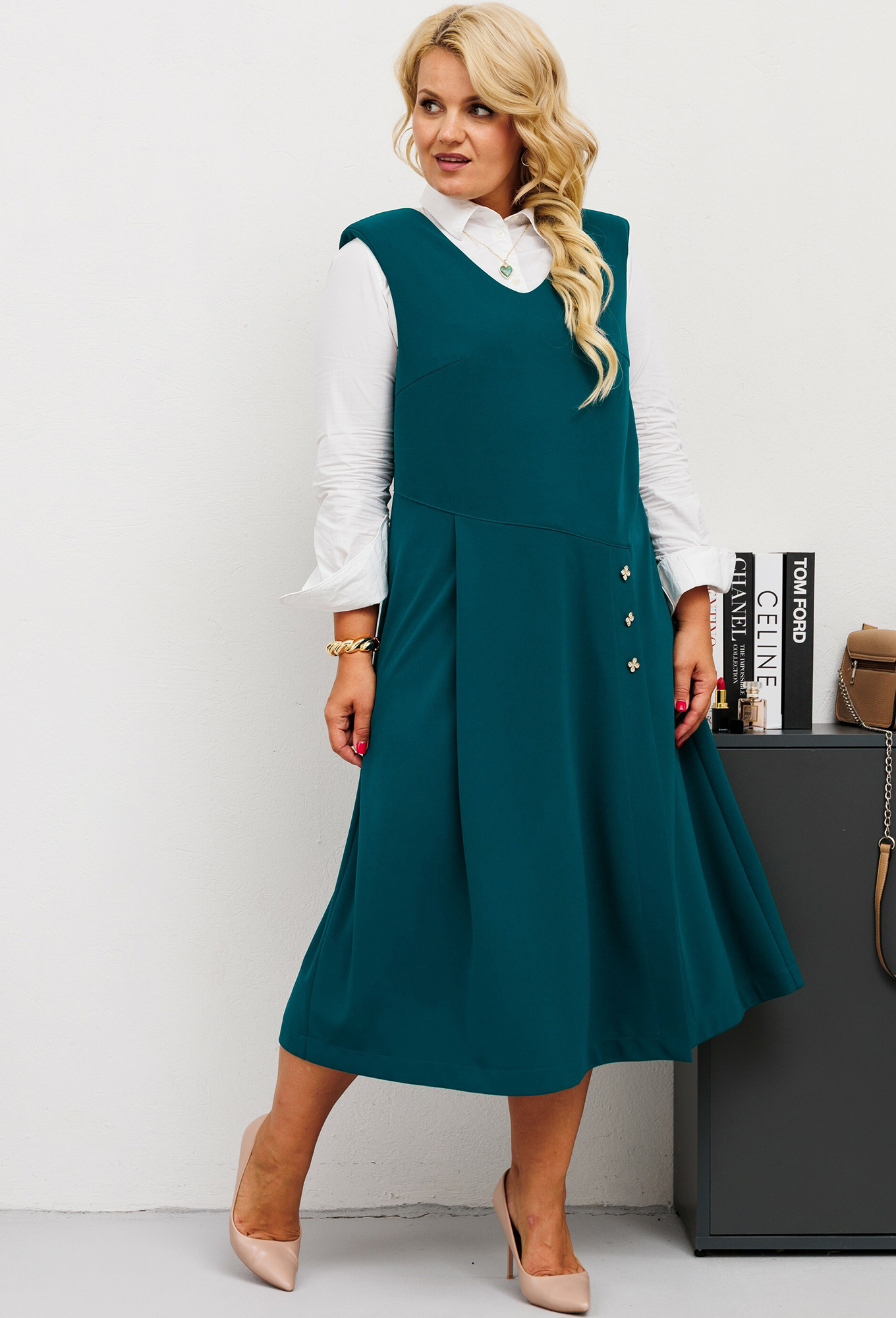Минималистичный стиль и ничего лишнего, можно дополнить аксессуарами, подойдет модель платья — сарафана как в офис, так и на каждый день. Удобное и комфортное, не стесняет движений и сочетается с другими предметами одежды, можно комбинировать с рубашкой, блузой . Материал - костюмно-плательная ткань.