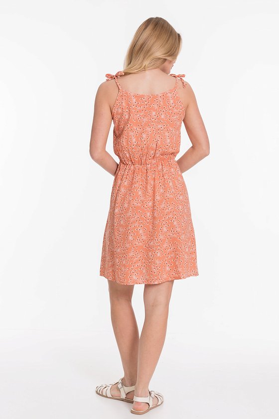 Сарафан летний женский на бретелях, средняя длина, талия подчеркнута резинкой.