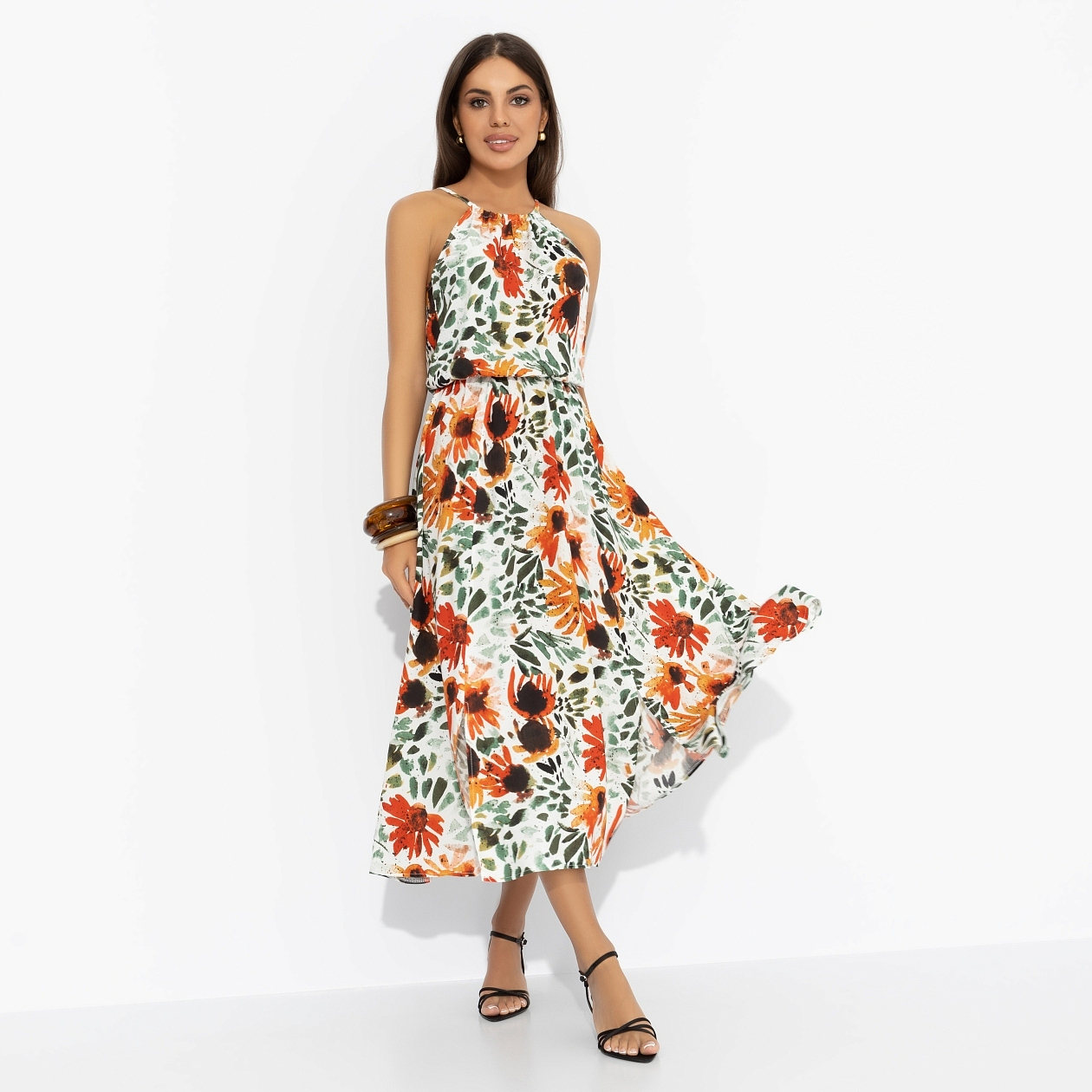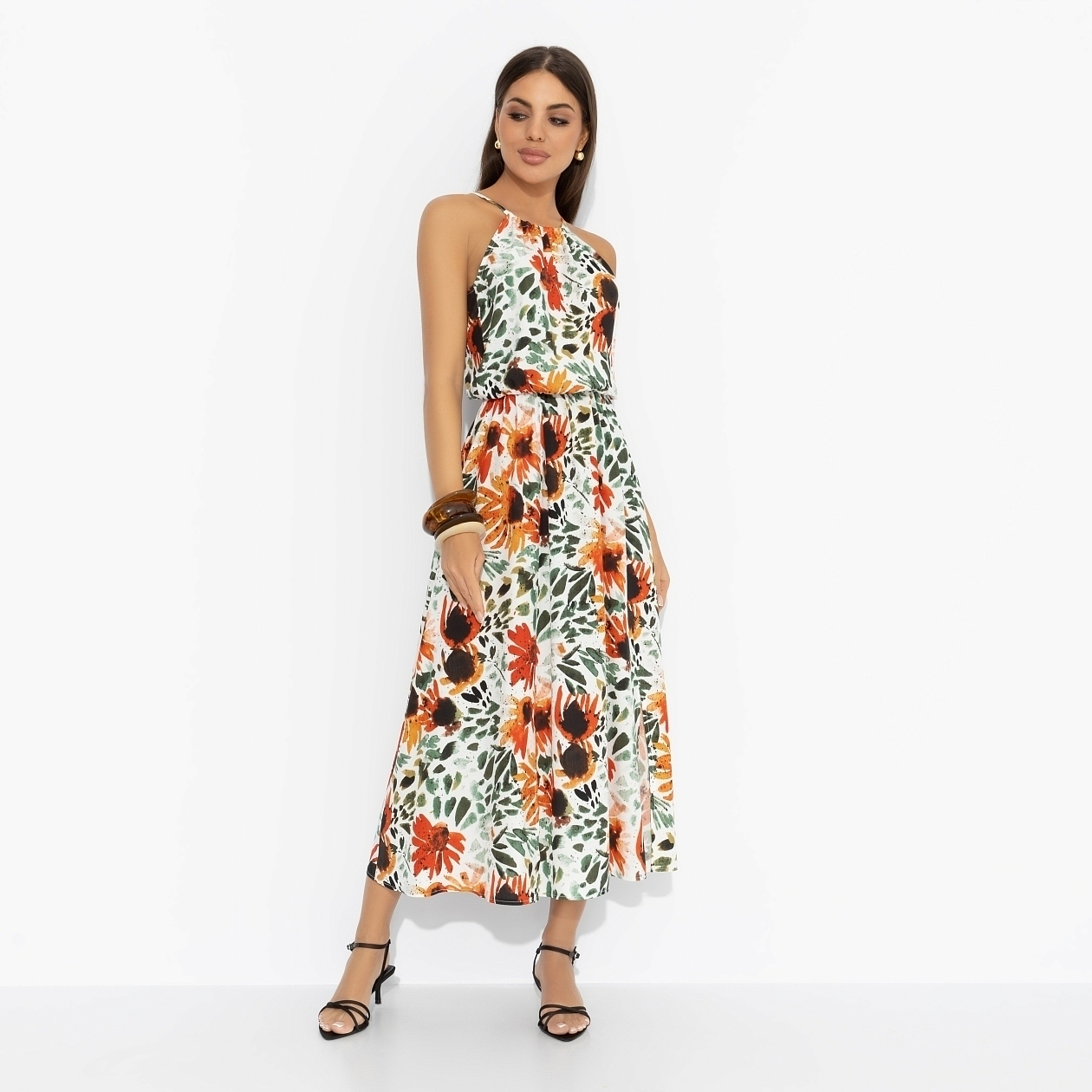 Солнце, шум моря, крики чаек и щебетание птиц – атмосфера для сарафана ЧАРУТТИ. Любой отпуск станет незабываем, если вы украсите его собой. Сарафан в длине миди. Приталенный силуэт изделия. Линия талии оформлена скрытой резинкой. Завязки в зоне декольте и на спинке. Симметричные разрезы по бокам изделия.