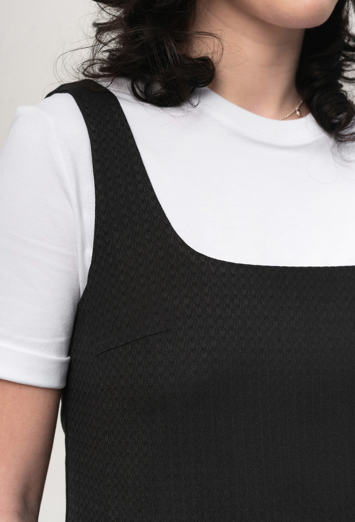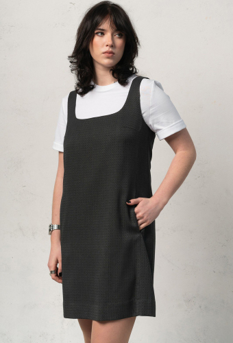 Сарафан женский из ткани с жаккардовым рисунком в мелкую клетку А-силуэта.