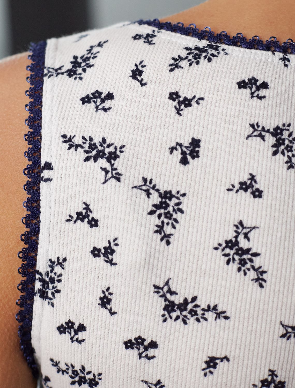 Сарафан белого цвета длины мини с U вырезом из фактурного трикотажа в рубчик создан для современных женщин, ценящих красоту и удобство. Особенность полотна - трикотаж кашкорсе удивительной мягкости, намного мягче стандартных вариантов, подходящий для расслабленных домашних и пижамных образов. Хлопок обеспечивает максимальный комфорт даже в течение длительного времени и позволяет коже дышать, а эластан в составе позволяет ткани подстраиваться под особенности фигуры. Крой выгодно подчеркивает фигуру и создает женственное настроение в образе. Благодаря отделке нежным кружевом и цветочным принтом сарафан выглядит по-особенному романтично и изысканно. Этот домашний сарафан подойдет для спокойного вечера в кругу семьи, а так же для отдыха и сна. Легкий аккуратный волан по низу придает платью на широких лямках интересный акцент. Такой милый сарафан идеально смотрится на разных типах фигуры благодаря представленной широкой размерной линейке. Универсальное хлопковое платье гармонично впишется в гардероб, подчеркнет индивидуальность и создаст хорошее настроение дома.