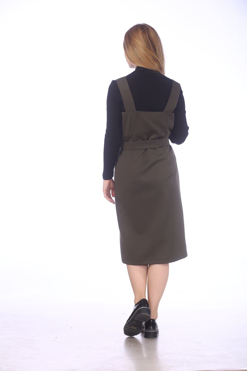 Описание: Сарафан прилегающего силуэта, с поясом, застежка на пуговицы,
