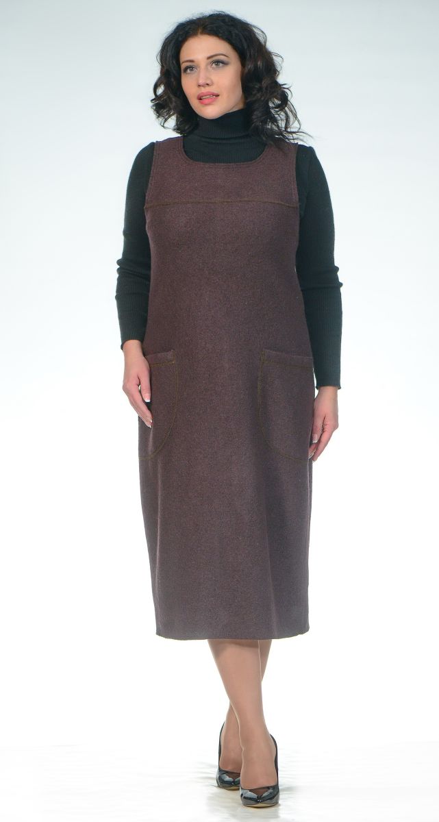 Описание: Сарафан прямого силуэта, без подкладки, с карманами, вареная шерсть