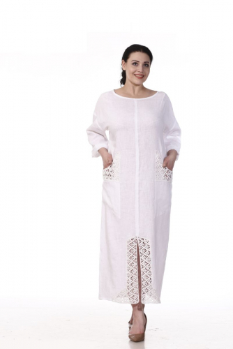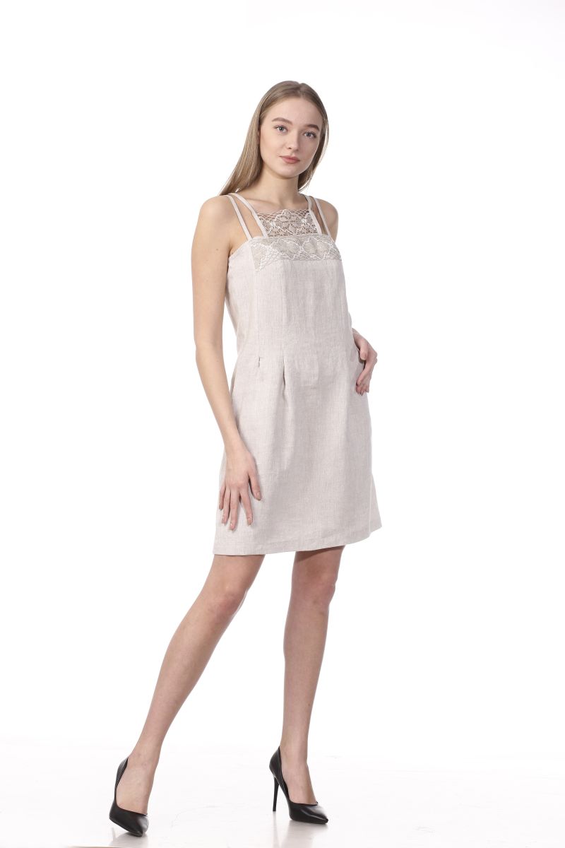 Описание: Сарафан на узких бретельках, кружево, лен.