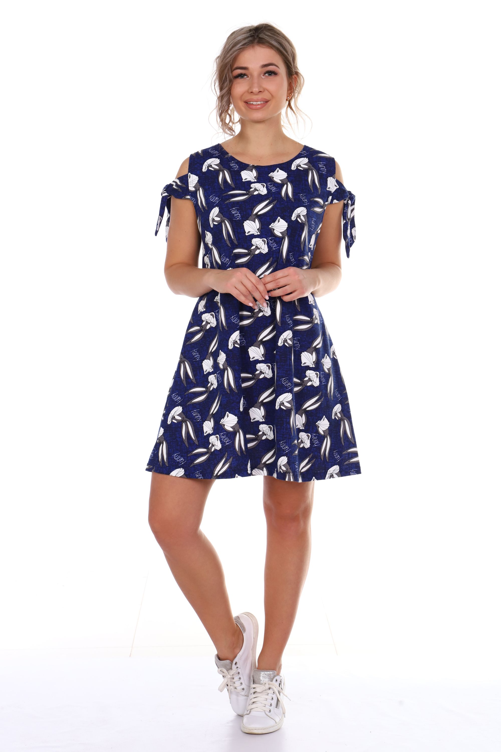Женский трикотажный сарафан А-силуэта. О-образная горловина. В пройме полочки и спинки две декоративные планки, завязывающиеся в красивый узел. Мягкий, приятный к телу материал в сочетании с нежной расцветкой создают женственный образ. За счет силуэта платье прекрасно скрывает недостатки фигуры. Оптимальное соотношение цены и качества. (М – 575).
