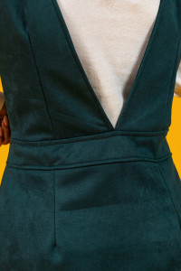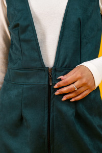 Женский замшевый сарафан с V-образным вырезом, длины мини. Отлично будет смотреться с водолазкой или рубашкой. Идеально дополнит базовый гардероб, с ним Вы сможете составить много новых образов.