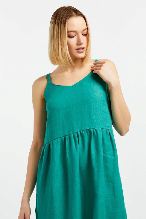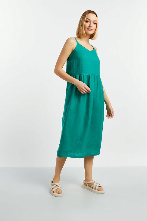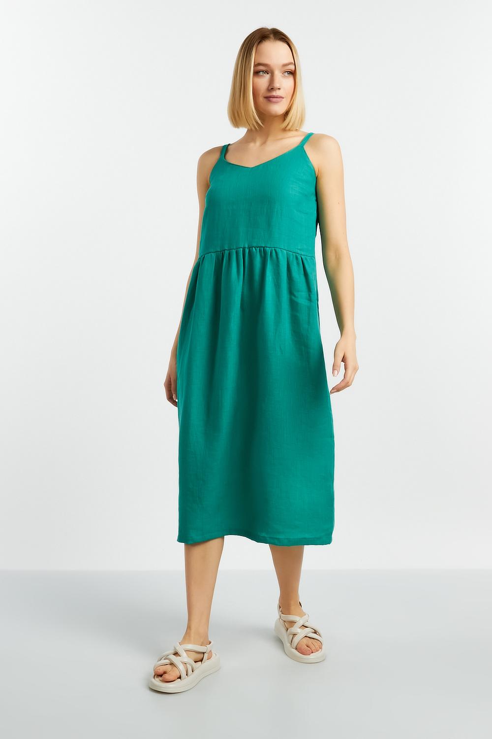 Прекрасный сарафан Леона свободного силуэта выполнен из 100% льна. Летний сарафан на бретелях покорит Ваши сердца. Вы будете неотразимы, и всегда в центре внимания. Округлый вырез горловины подчеркивает зону декольте и привлекательную часть женской фигуры - ключицу. Тонкие бретели позволяют не сковывать движения.