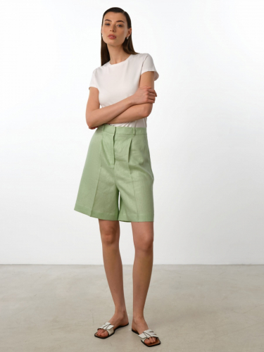 Льняные шорты прямого свободного кроя средней длины с защипами – настоящий маст-хэв для лета. Благодаря составу из 100% льна дарят прохладу и комфорт, а также обладают повышенной прочностью и быстро сохнут. Модель дополнена отрезным поясом со шлевками, боковыми карманами и задними прорезными карманами с листочкой. Защипы на поясе формируют идеальные стрелки. Отстрочка в тон по нижнем краю изделия. Шорты застегиваются на потайную застежку – металлический крючок и нейлоновую молнию Три варианта цвета для разных образов: коралловый, белый, мятный. 100% лен