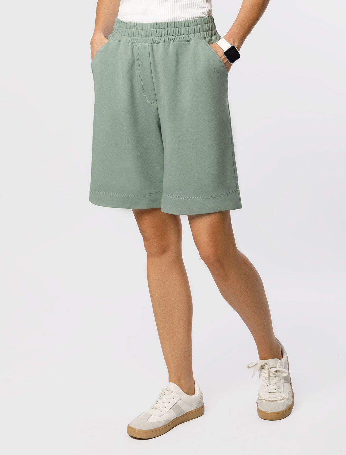 Шорты из тонкого премиального футера с эластаном D48.010 св.оливковый