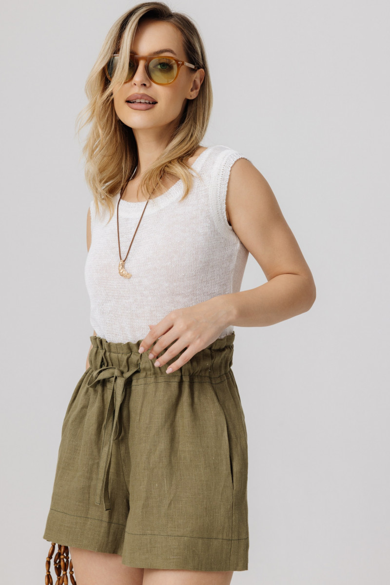 Шорты из 100% льна на высокой талии.