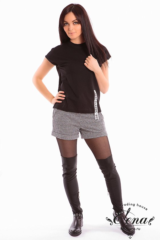 Шорты женские выполнены из полотна академик. Для лучшей посадки по линии талии продёрнут шнур, а сзади в поясе проложена и зафиксирована эластичная резиновая тесьма. По бокам расположены карманы.