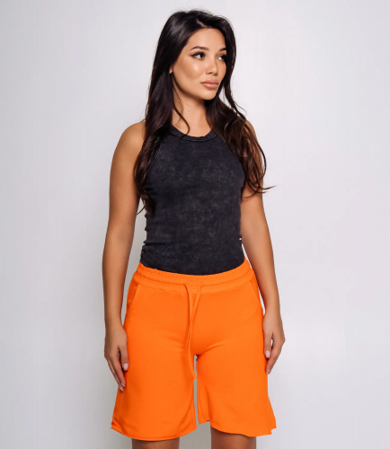 Шорты-велосипедки облегающего силуэта. Выполнены из нежной хлопковой кулирки. Длина модели выше колен. Линия талии завышенная. Широкий отрезной пояс и эластичная тесьма в талии дарят особый комфорт.