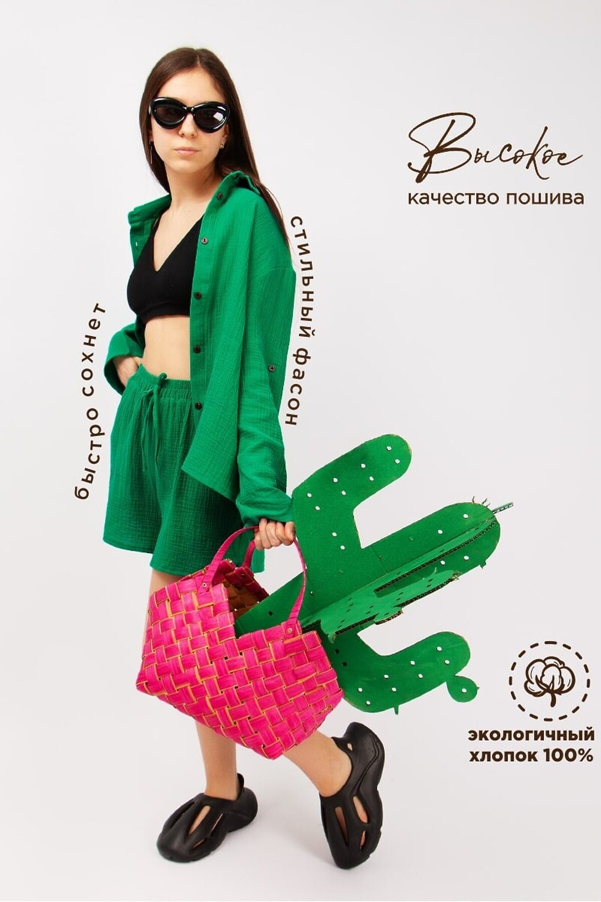 Костюм для девочки Соль&Перец свободного кроя. Рукава можно зафиксировать с помощью паты и пуговицы из кокоса. Ткань-двухслойный муслин, хорошо пропускает воздух, защищает от солнца, идеально подходит для чувствительной кожи. Отличный выбор для летнего отдыха. Размер 122-32 (рост 122 см) длина рубашки 52 см, ОГ 76 см, длина рукава 42 см, длина шорт 30 см, ОТ 48 см, ОБ 78 см. Размер 134-36 (рост 134 см) длина рубашки 56 см, ОГ 80 см, длина рукава 48 см, длина шорт 32 см, ОТ 54 см, ОБ 82 см. Размер 146-40 (рост 146 см) длина рубашки 60 см, ОГ 84 см, длина рукава 52 см, длина шорт 36 см, ОТ 58 см, ОБ 86 см. Размер 158-44 (рост 158 см) длина рубашки 64 см, ОГ 88 см, длина рукава 56 см, длина шорт 38 см, ОТ 62 см, ОБ 90 см. Размер 170-48 (рост 170 см) длина рубашки 66 см, ОГ 92 см, длина рукава 60 см, длина шорт 40 см, ОТ 66 см, ОБ 94 см.