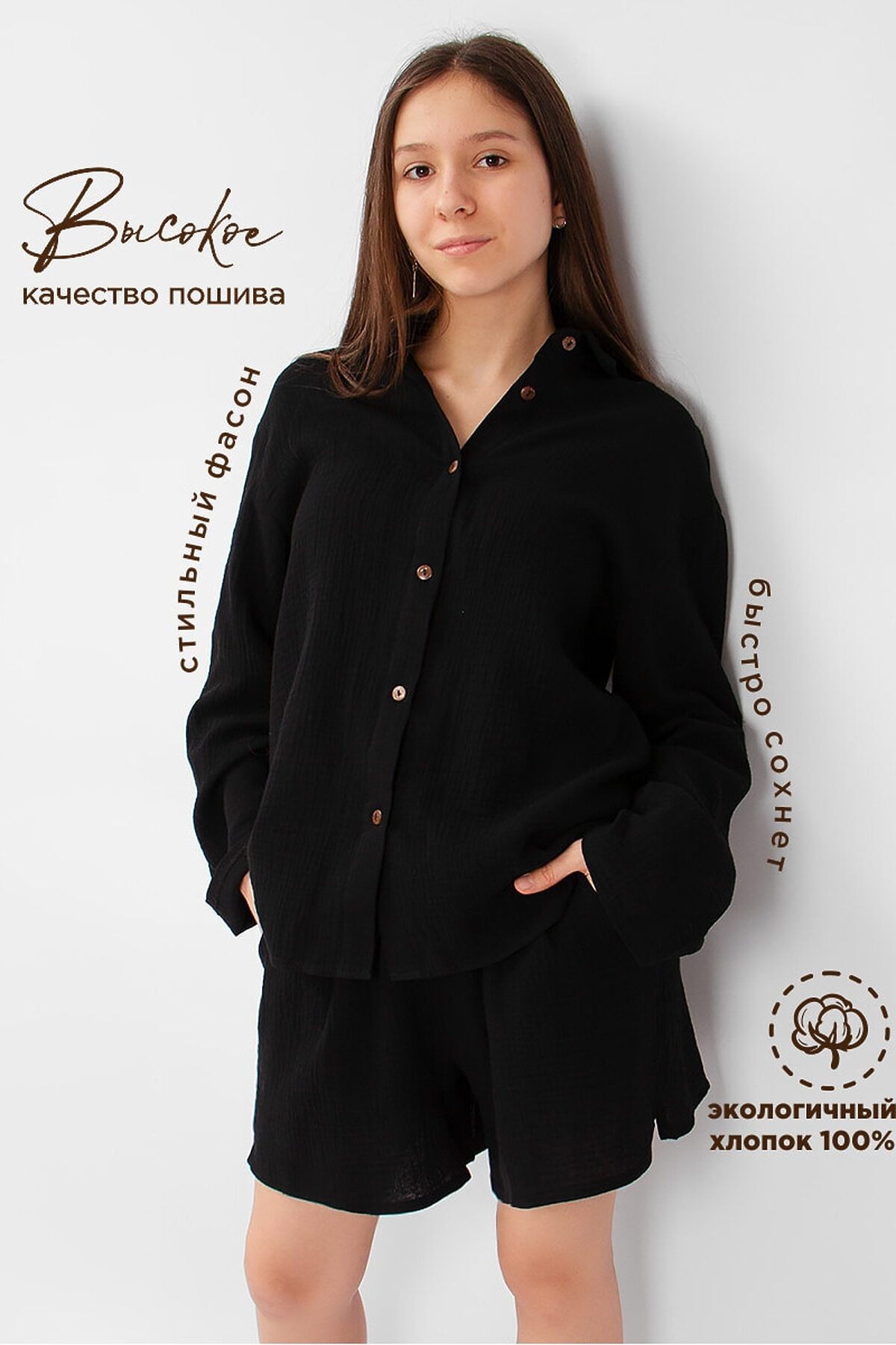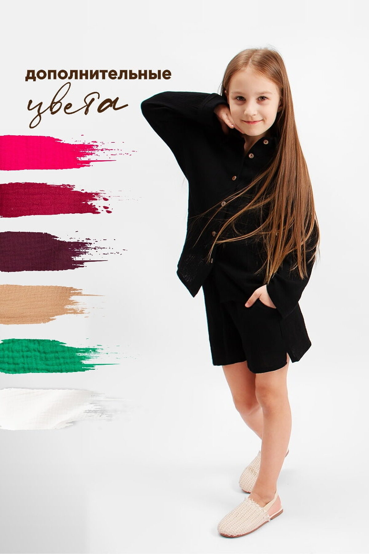 Костюм для девочки Соль&Перец свободного кроя. Рукава можно зафиксировать с помощью паты и пуговицы из кокоса. Ткань-двухслойный муслин, хорошо пропускает воздух, защищает от солнца, идеально подходит для чувствительной кожи. Отличный выбор для летнего отдыха. Размер 122-32 (рост 122 см) длина рубашки 52 см, ОГ 76 см, длина рукава 42 см, длина шорт 30 см, ОТ 48 см, ОБ 78 см. Размер 134-36 (рост 134 см) длина рубашки 56 см, ОГ 80 см, длина рукава 48 см, длина шорт 32 см, ОТ 54 см, ОБ 82 см. Размер 146-40 (рост 146 см) длина рубашки 60 см, ОГ 84 см, длина рукава 52 см, длина шорт 36 см, ОТ 58 см, ОБ 86 см. Размер 158-44 (рост 158 см) длина рубашки 64 см, ОГ 88 см, длина рукава 56 см, длина шорт 38 см, ОТ 62 см, ОБ 90 см. Размер 170-48 (рост 170 см) длина рубашки 66 см, ОГ 92 см, длина рукава 60 см, длина шорт 40 см, ОТ 66 см, ОБ 94 см.