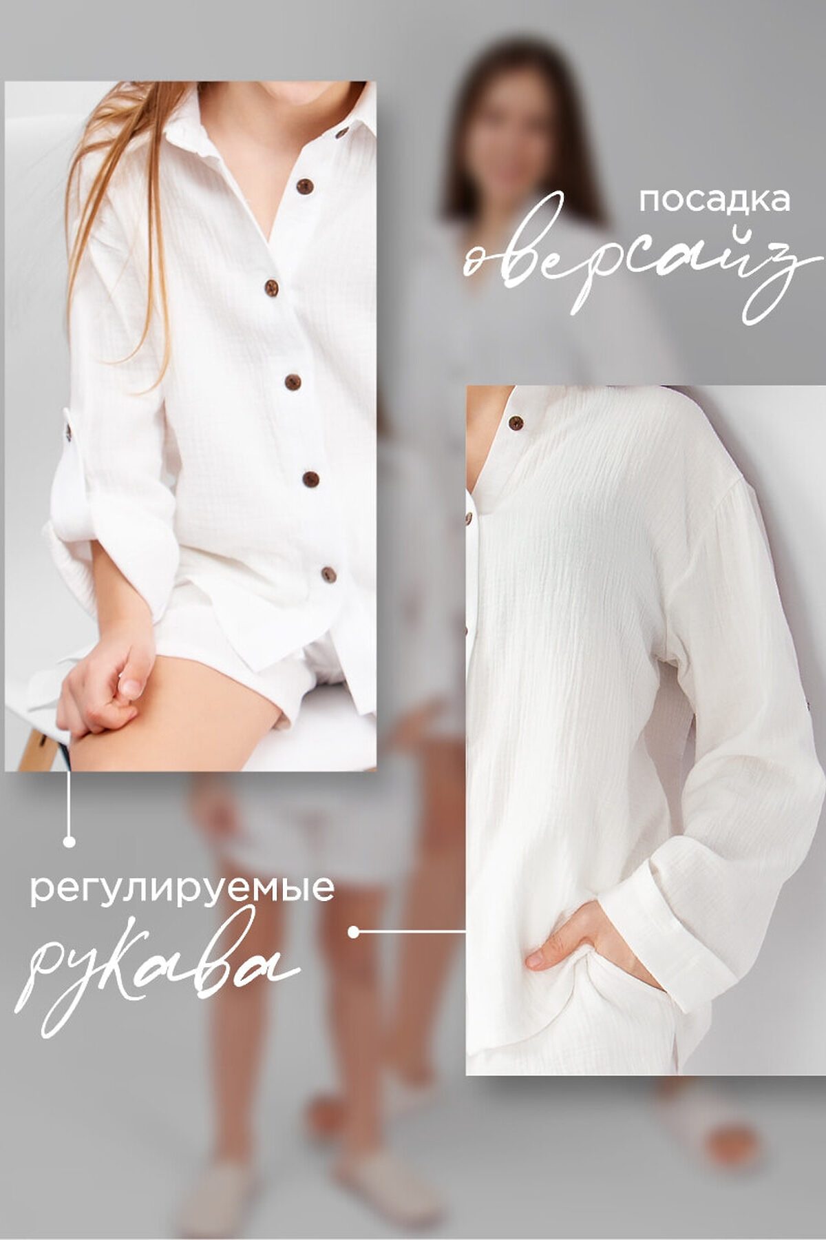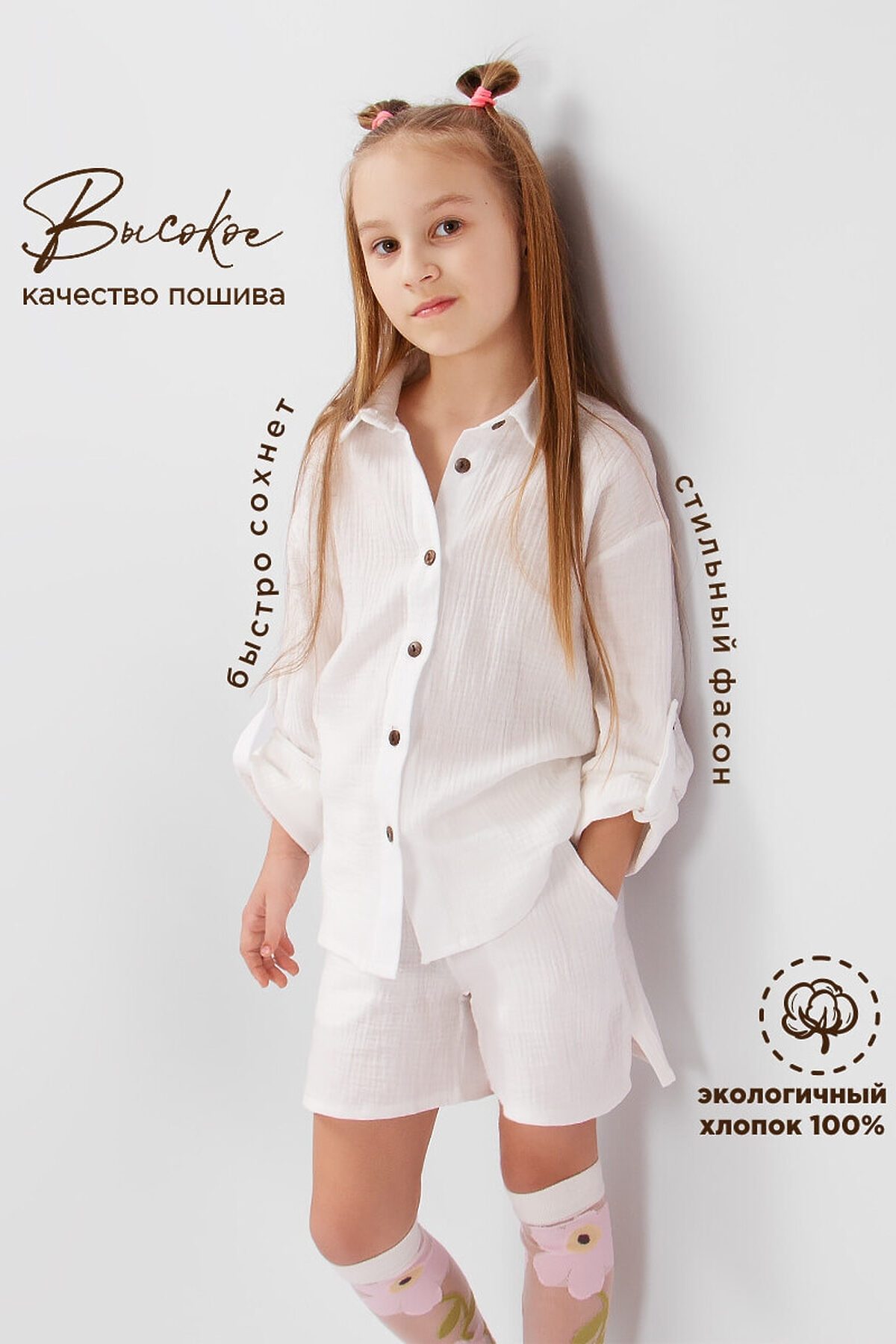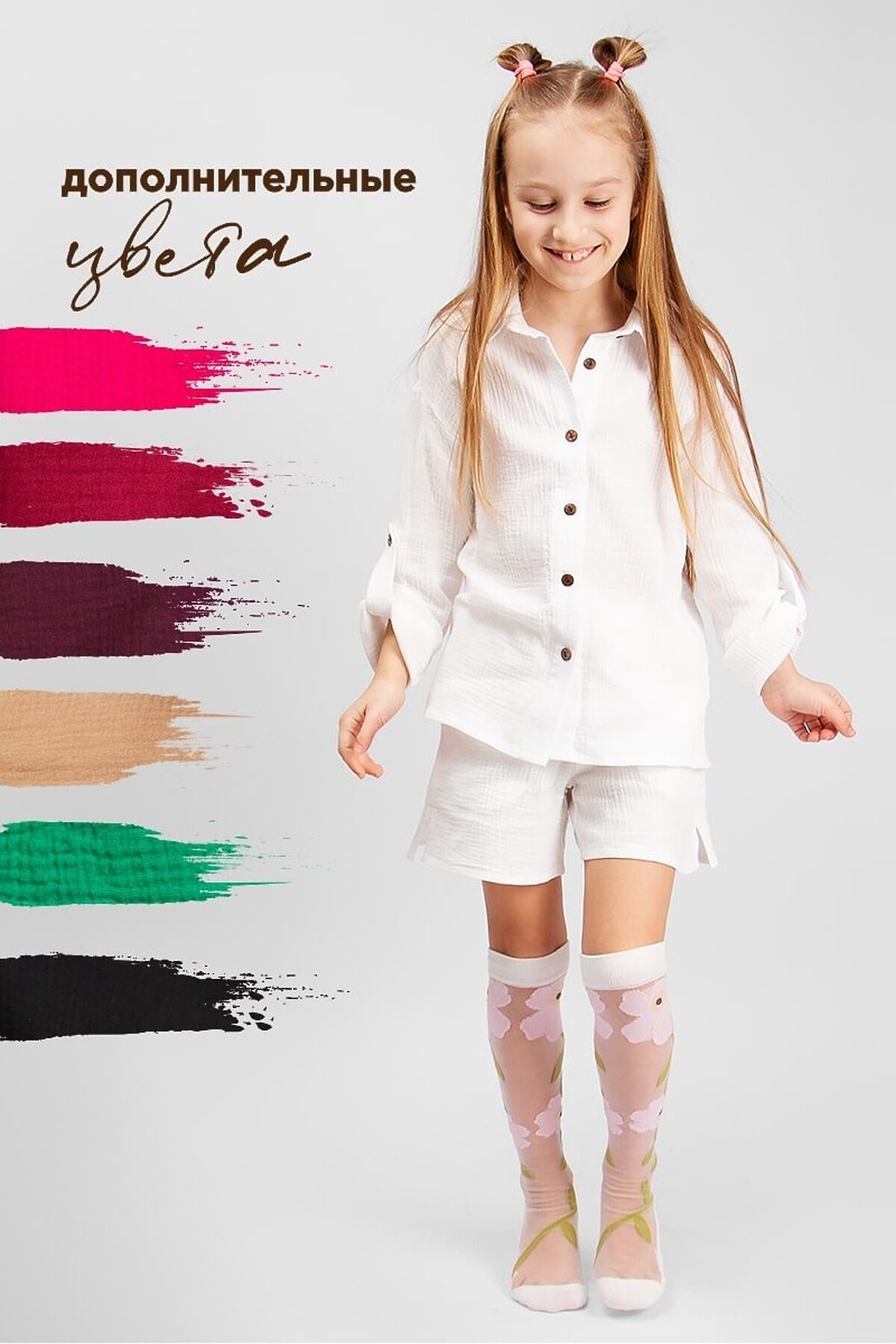 Костюм для девочки Соль&Перец свободного кроя. Рукава можно зафиксировать с помощью паты и пуговицы из кокоса. Ткань-двухслойный муслин, хорошо пропускает воздух, защищает от солнца, идеально подходит для чувствительной кожи. Отличный выбор для летнего отдыха. Размер 122-32 (рост 122 см) длина рубашки 52 см, ОГ 76 см, длина рукава 42 см, длина шорт 30 см, ОТ 48 см, ОБ 78 см. Размер 134-36 (рост 134 см) длина рубашки 56 см, ОГ 80 см, длина рукава 48 см, длина шорт 32 см, ОТ 54 см, ОБ 82 см. Размер 146-40 (рост 146 см) длина рубашки 60 см, ОГ 84 см, длина рукава 52 см, длина шорт 36 см, ОТ 58 см, ОБ 86 см. Размер 158-44 (рост 158 см) длина рубашки 64 см, ОГ 88 см, длина рукава 56 см, длина шорт 38 см, ОТ 62 см, ОБ 90 см. Размер 170-48 (рост 170 см) длина рубашки 66 см, ОГ 92 см, длина рукава 60 см, длина шорт 40 см, ОТ 66 см, ОБ 94 см.