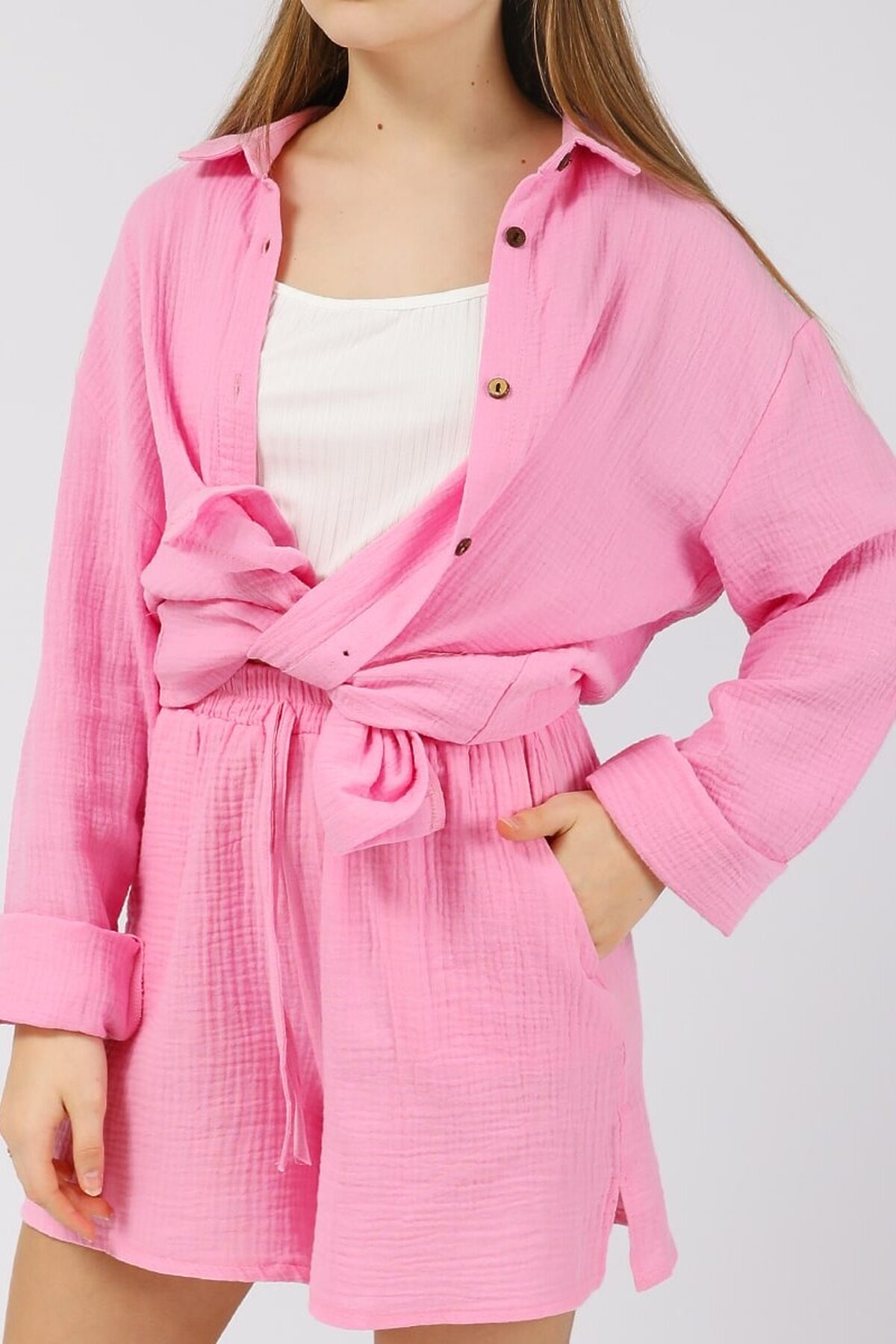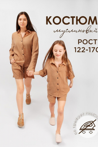 Костюм для девочки Соль&Перец свободного кроя. Рукава можно зафиксировать с помощью паты и пуговицы из кокоса. Ткань-двухслойный муслин, хорошо пропускает воздух, защищает от солнца, идеально подходит для чувствительной кожи. Отличный выбор для летнего отдыха. Размер 122-32 (рост 122 см) длина рубашки 52 см, ОГ 76 см, длина рукава 42 см, длина шорт 30 см, ОТ 48 см, ОБ 78 см. Размер 134-36 (рост 134 см) длина рубашки 56 см, ОГ 80 см, длина рукава 48 см, длина шорт 32 см, ОТ 54 см, ОБ 82 см. Размер 146-40 (рост 146 см) длина рубашки 60 см, ОГ 84 см, длина рукава 52 см, длина шорт 36 см, ОТ 58 см, ОБ 86 см. Размер 158-44 (рост 158 см) длина рубашки 64 см, ОГ 88 см, длина рукава 56 см, длина шорт 38 см, ОТ 62 см, ОБ 90 см. Размер 170-48 (рост 170 см) длина рубашки 66 см, ОГ 92 см, длина рукава 60 см, длина шорт 40 см, ОТ 66 см, ОБ 94 см.