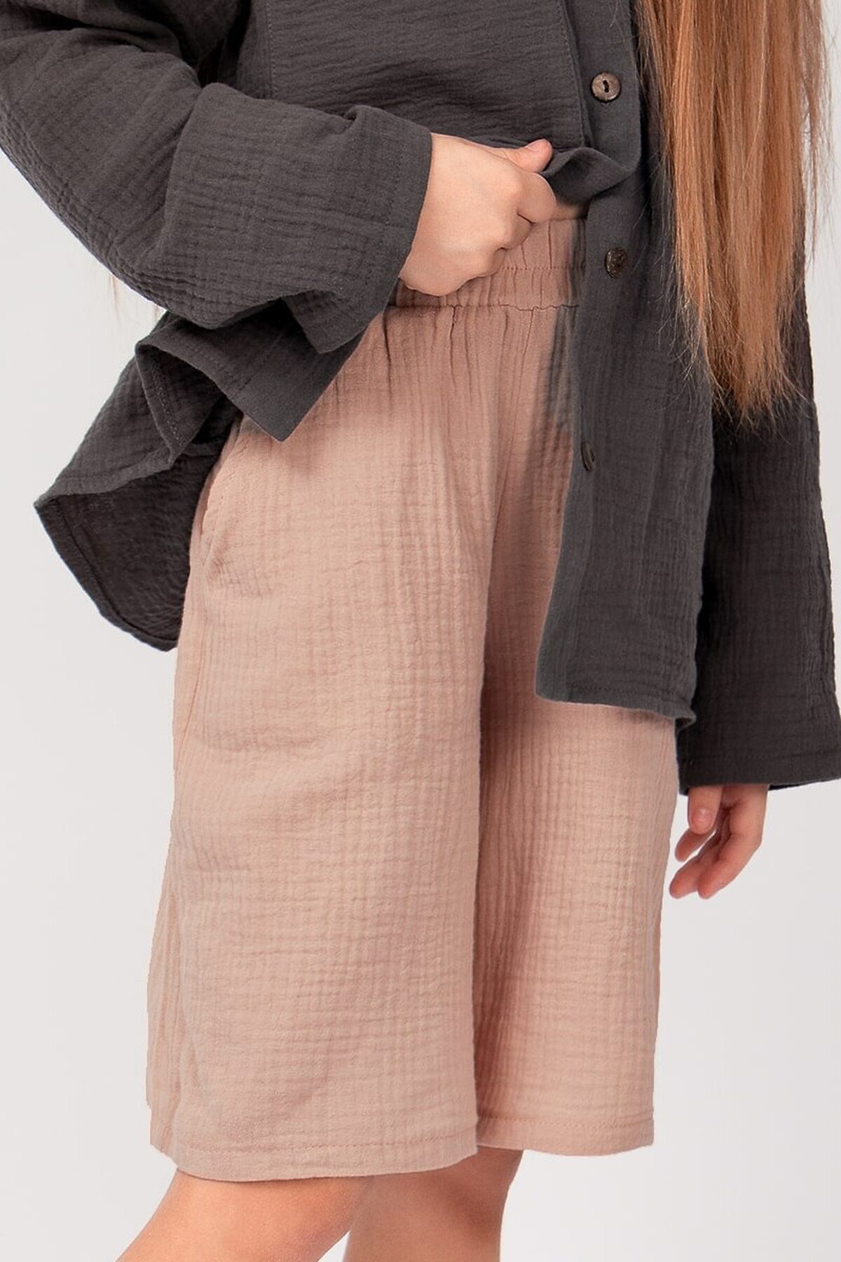 Шорты детские Соль&Перец из муслина. Ткань-двухслойный муслин, хорошо пропускает воздух, защищает от солнца, идеально подходит для чувствительной кожи. Модель шорт свободная, не сковывающая движений и немного удлиненная. Шорты из муслина имеют мягкую резиночку на поясе, по бокам карманы. Отличный вариант для летних прогулок, похода на пляж, отдыха на природе. Размер 98-24 (рост 98 см) длина шорт 34 см, ОТ 42 см, ОБ 64 см. Размер 110-28 (рост 110 см) длина шорт 40 см, ОТ 46 см, ОБ 68 см. Размер 122-32 (рост 122 см) длина шорт 44 см, ОТ 50 см, ОБ 72 см. Размер 134-36 (рост 134 см) длина шорт 48 см, ОТ 54 см, ОБ 76 см. Размер 146-40 (рост 146 см) длина шорт 52 см, ОТ 58 см, ОБ 80 см. Размер 158-44 (рост 158 см) длина шорт 58 см, ОТ 62 см, ОБ 84 см. Размер 170-48 (рост 170 см) длина шорт 62 см, ОТ 64 см, ОБ 88 см.