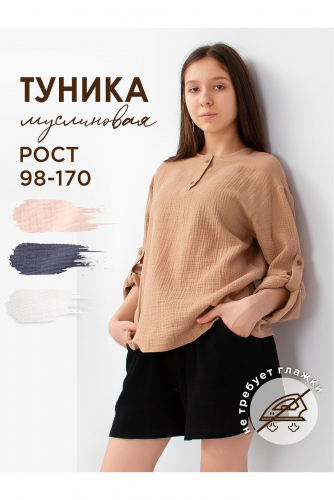 Стильная, детская, подростковая туника Соль&Перец свободного кроя. Рукава можно зафиксировать с помощью паты и пуговицы из кокоса. Ткань-двухслойный муслин, хорошо пропускает воздух, защищает от солнца, идеально подходит для чувствительной кожи. Отличный выбор для отдыха у моря, бассейна, на пляже или на природе. Размер 98-24 (рост 98 см) длина изделия 42 см, обхват груди 68 см, длина рукава 30 см. Размер 110-28 (рост 110 см) длина изделия 45 см, обхват груди 76 см, длина рукава 36 см. Размер 122-32 (рост 122 см) длина изделия 50 см, обхват груди 82 см, длина рукава 40 см. Размер 134-36 (рост 134 см) длина изделия 53 см, обхват груди 92 см, длина рукава 45 см. Размер 146-40 (рост 146 см) длина изделия 57 см, обхват груди 102 см, длина рукава 49 см. Размер 158-44 (рост 158 см) длина изделия 62 см, обхват груди 110 см, длина рукава 54 см. Размер 170-48 (рост 170 см) длина изделия 65 см, обхват груди 116 см, длина рукава 56 см.