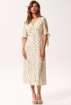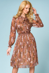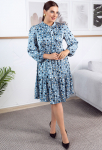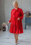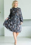 Элегантное платье-рубашка длины миди. Изделие свободного кроя с цельнокроеными рукавами с отделочными патами и расклешенным подолом с разрезами сшили из нежной струящейся с ярким запоминающимся принтом ткани. Модель с застёжкой на пуговицах, отложным воротником с отрезной стойкой и боковыми карманами дополнена поясом, подчеркивающим талию. Это женственное платье прекрасно впишется как в стиль casual так и в нестрогий офисный дресс-код.