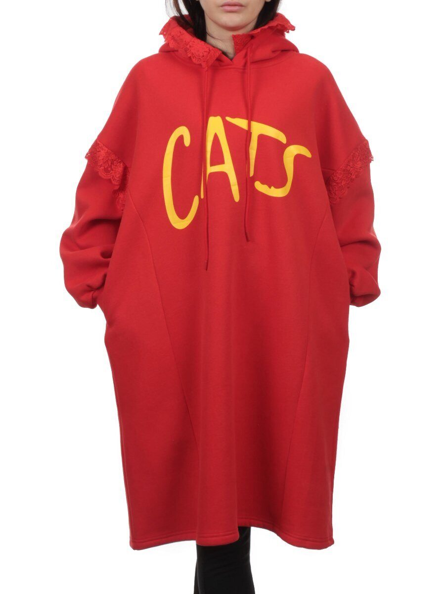 2247 RED Толстовка-платье женская (85% хлопок, 10% полиэстер, 5% спандекс)