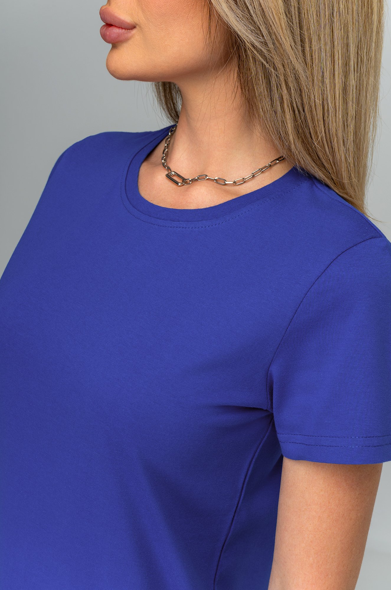 Женская базовая футболка станет незаменимой частью капсульного гардероба. Классическая футболка выполнена из 100% хлопка. Футболка василькового цвета — идеальный выбор для тех, кто ценит стиль, комфорт и простоту в каждой детали. Однотонная синяя футболка — прекрасная база на лето.