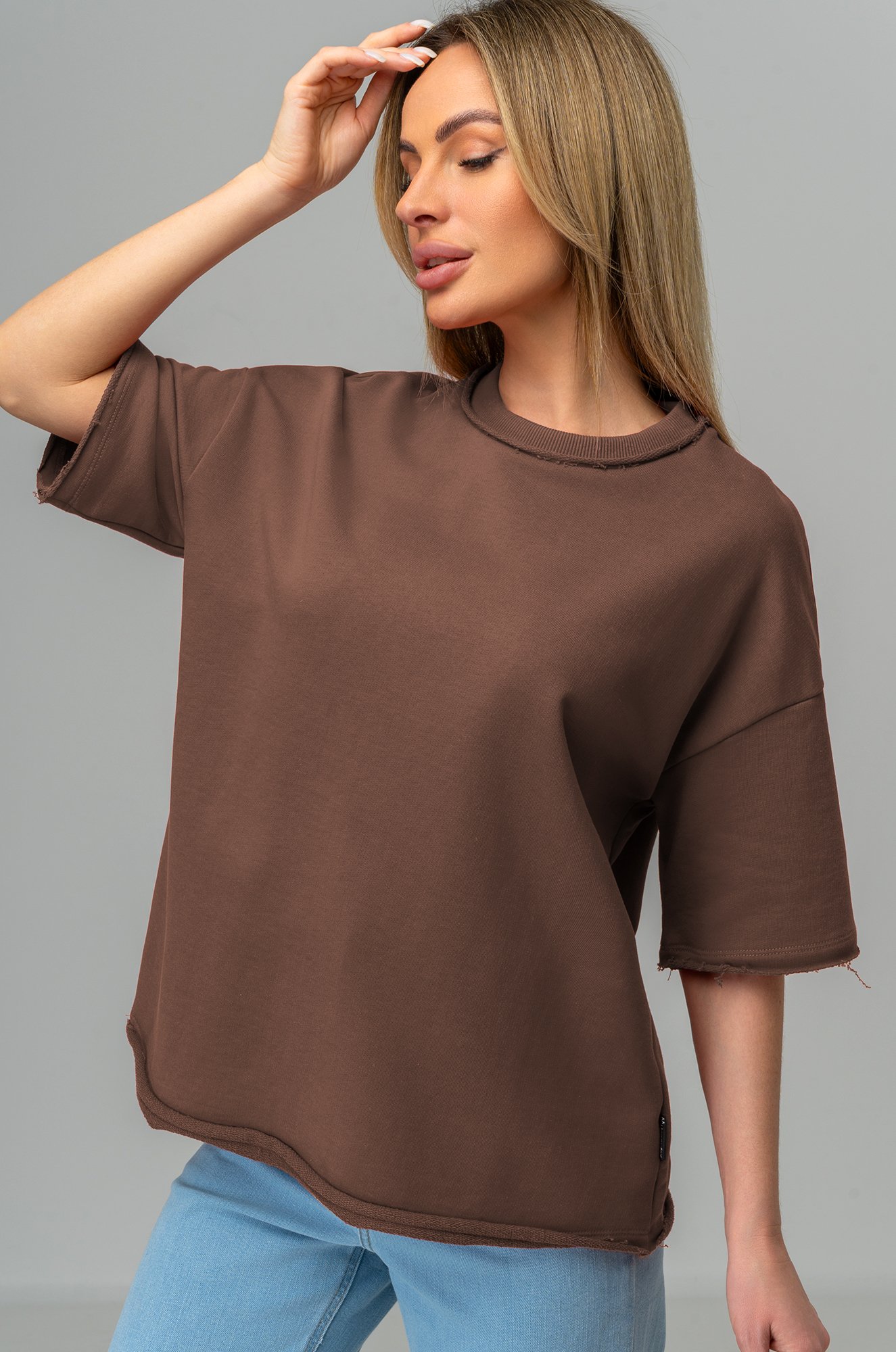 Ж..показатьенская футболка оверсайз легко впишется в любой повседневный образ. Базовая коричневая футболка создана для тех, кто ценит простоту и утончённую элегантность.