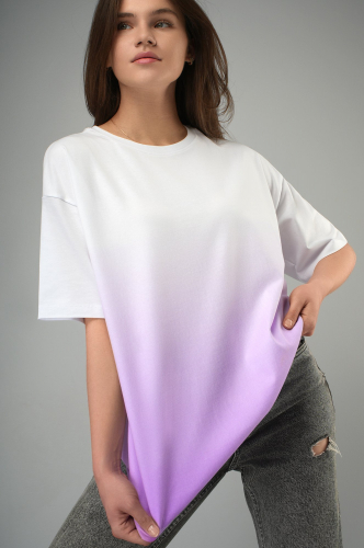 Нижний край футболки и удлиненные рукава имеют необработанные швы, что добавляет легкую небрежность и оригинальность. Футболка с усиленным воротом и удлинённым силуэтом не сковывает движений. Трикотажная футболка отлично подойдёт для женщин, которые ценят практичность и изысканный стиль. Футболка из трикотажа незаменима для прогулок, отдыха и активного досуга.