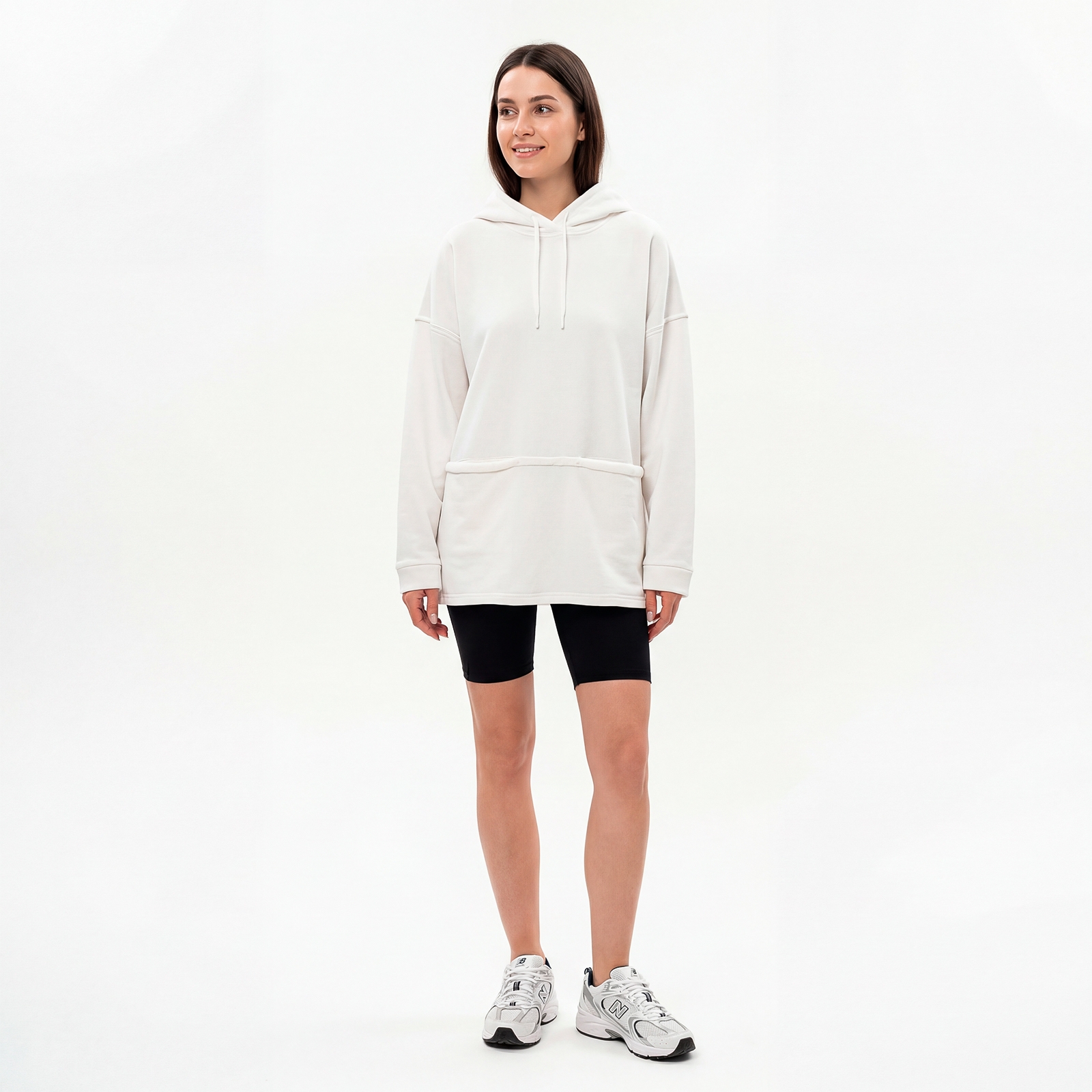 крем Женская худи свободного кроя с капюшоном и карманами в подрезе под грудью.Материал: