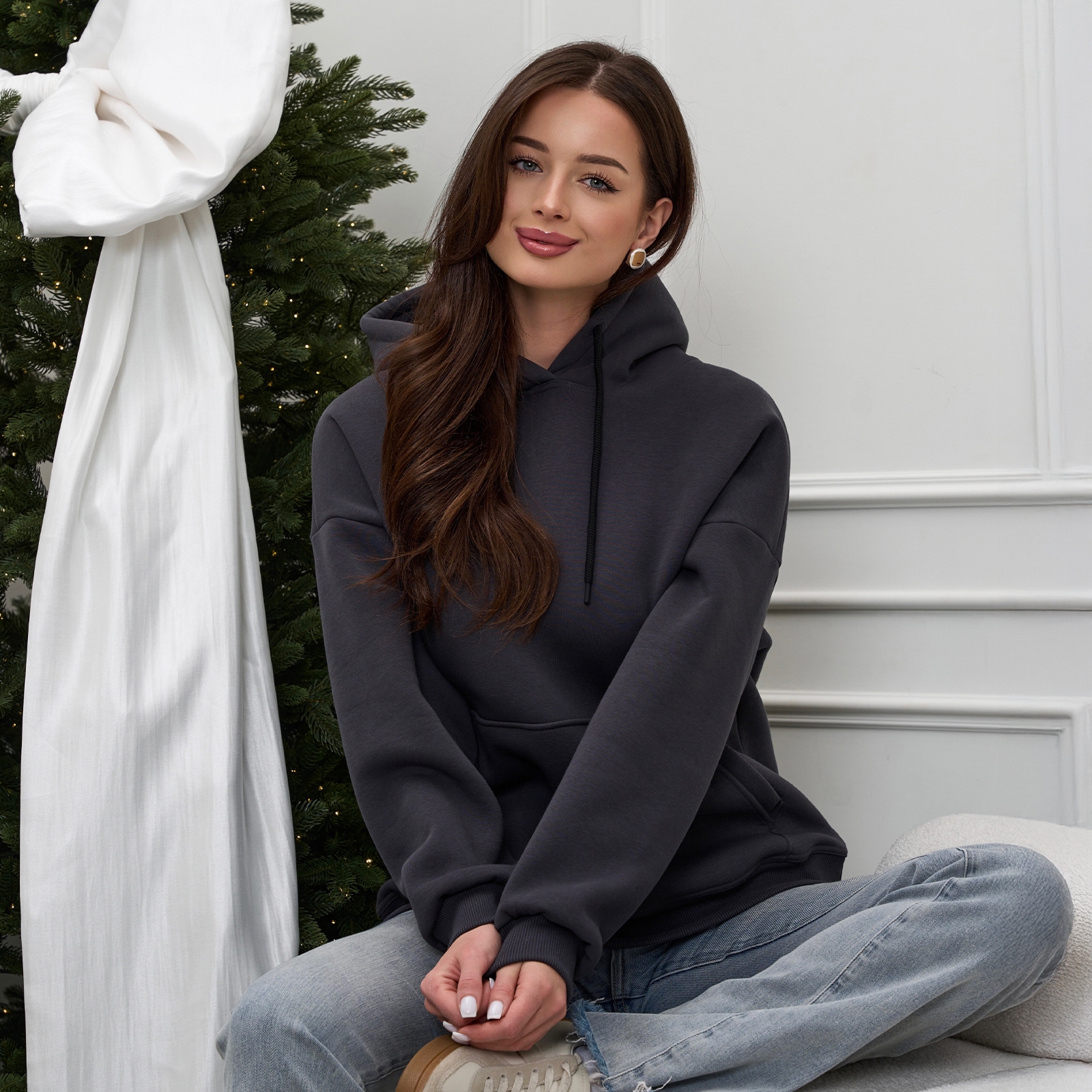 т.серый Женская базовая худи с капюшоном и карманом кенгуру.Материал: