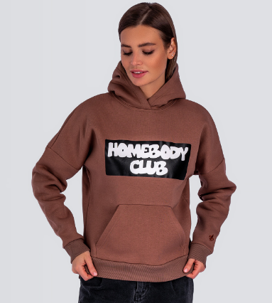Женская худи с капюшоном и накладным карманом (термо "Homebody club").