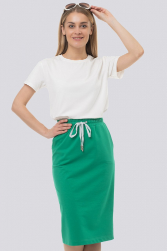 В гардеробе каждой девушки должны быть базовые модели футболок. Их можно носить со строгими брюками, юбками, джинсами. Интересно футболки будут смотреться в деловых образах, под пиджаком. Модель - слегка приталенного силуэта, линия плеча - мягкая. Для любителей минимализма декор полностью отсутствует, не считая фирменного знака "G", который позволяет изделию выглядеть дорого. Наши дизайнеры предлагают комплект с юбкой в стиле "спорт шик". Юбка с удобными карманами, сзади - шлица, по талии - резинка с мерцающим шнуром. Яркий зеленый цвет - хит сезона лето 2022. Длина придает легкий оттенок элегантности. Состав ткани футболки: 95% хлопок, 5% эластан. Состав ткани юбки: 75% хлопок, 20% полиэстер, 5% спандекс.