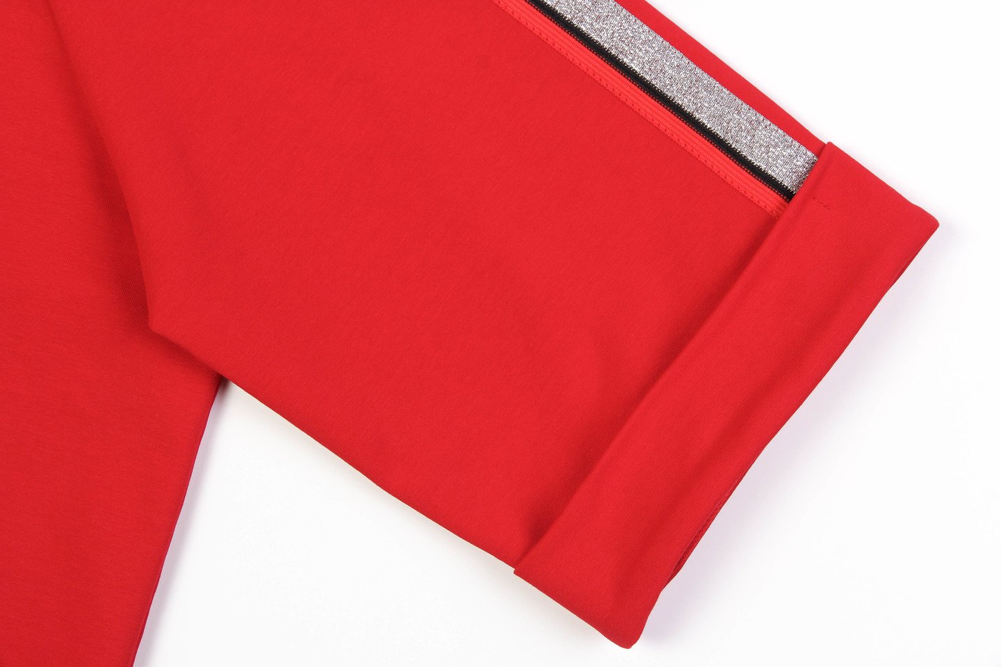 Женственный и стильный трикотажный костюм, с помощью которого можно создать как праздничный, так и повседневный монохромный Look. Свитшот с рукавом реглан. Рукава укорочены, по низу рукава манжета- отворот. Брюки свободные на резинке. Яркости комплекту придают лампасы из тесьмы по рукавам свитшота и брюкам, и декоративными строчками по горловине и низу свитшота. Состав трикотажа: 75% хлопок, 20% полиэстер, 5% спандекс.