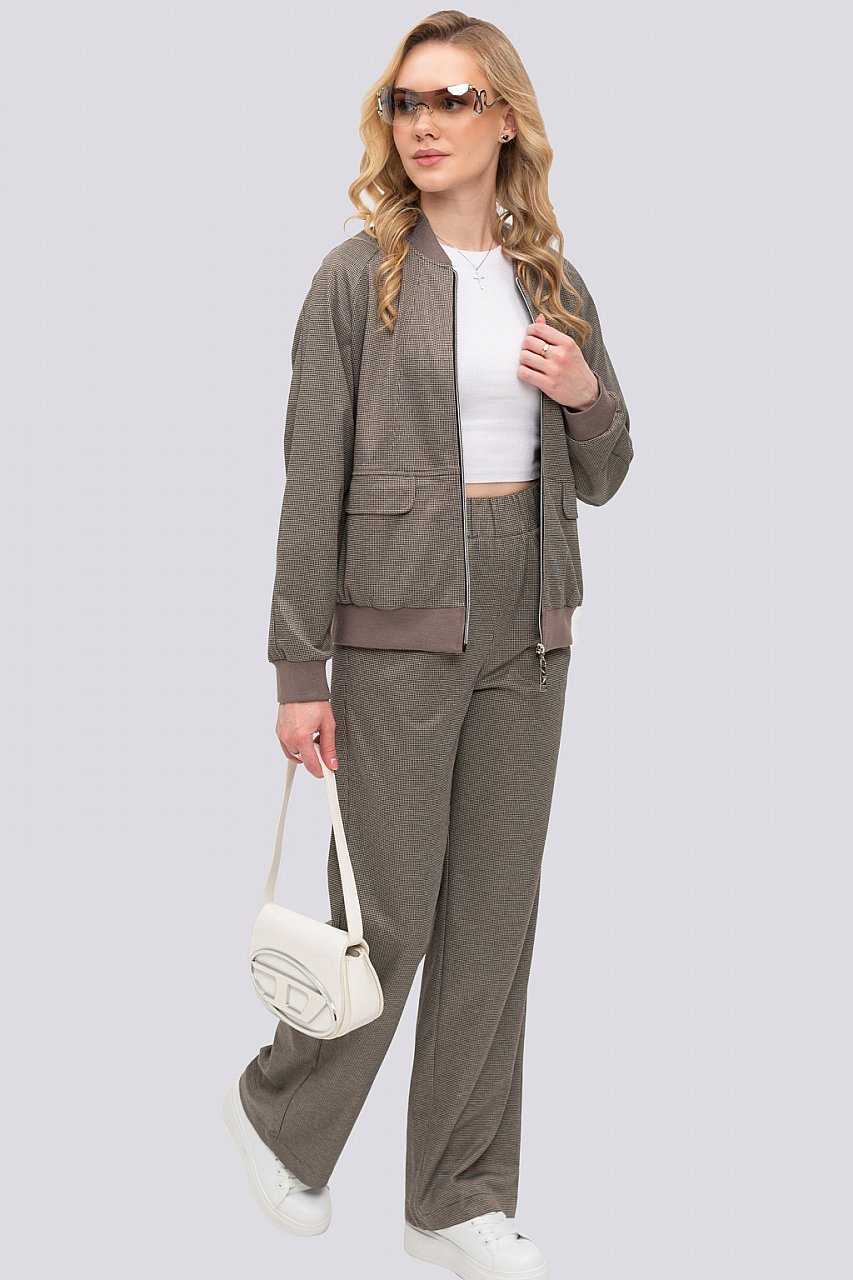 Стильный и удобный трикотажный костюм необходим каждой моднице. Олимпийка - бомбер на молнии стала настолько универсальной, что женщины с большим удовольствием носят ее круглогодично. Карманы с клапаном, покрой рукава – реглан. Широкие брюки последние сезоны - неотъемлемая часть гардероба каждой девушки. Они отлично смотрятся на любой фигуре, подходят к разной обуви. На талии – резинка. Модель представлена в однотонном варианте, а также в ткани с рисунком, что удовлетворит запросы любой покупательницы и позволит ей выглядеть повседневно или нарядно, в зависимости от случая. Состав трикотажа: 75% хлопок, 20% полиэстер, 5% спандекс.
