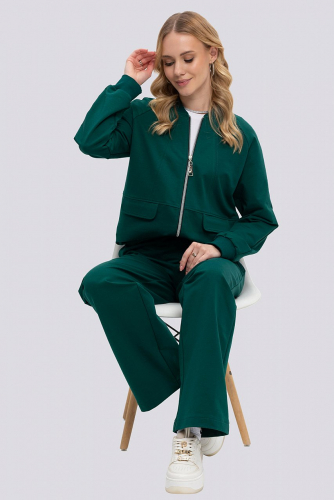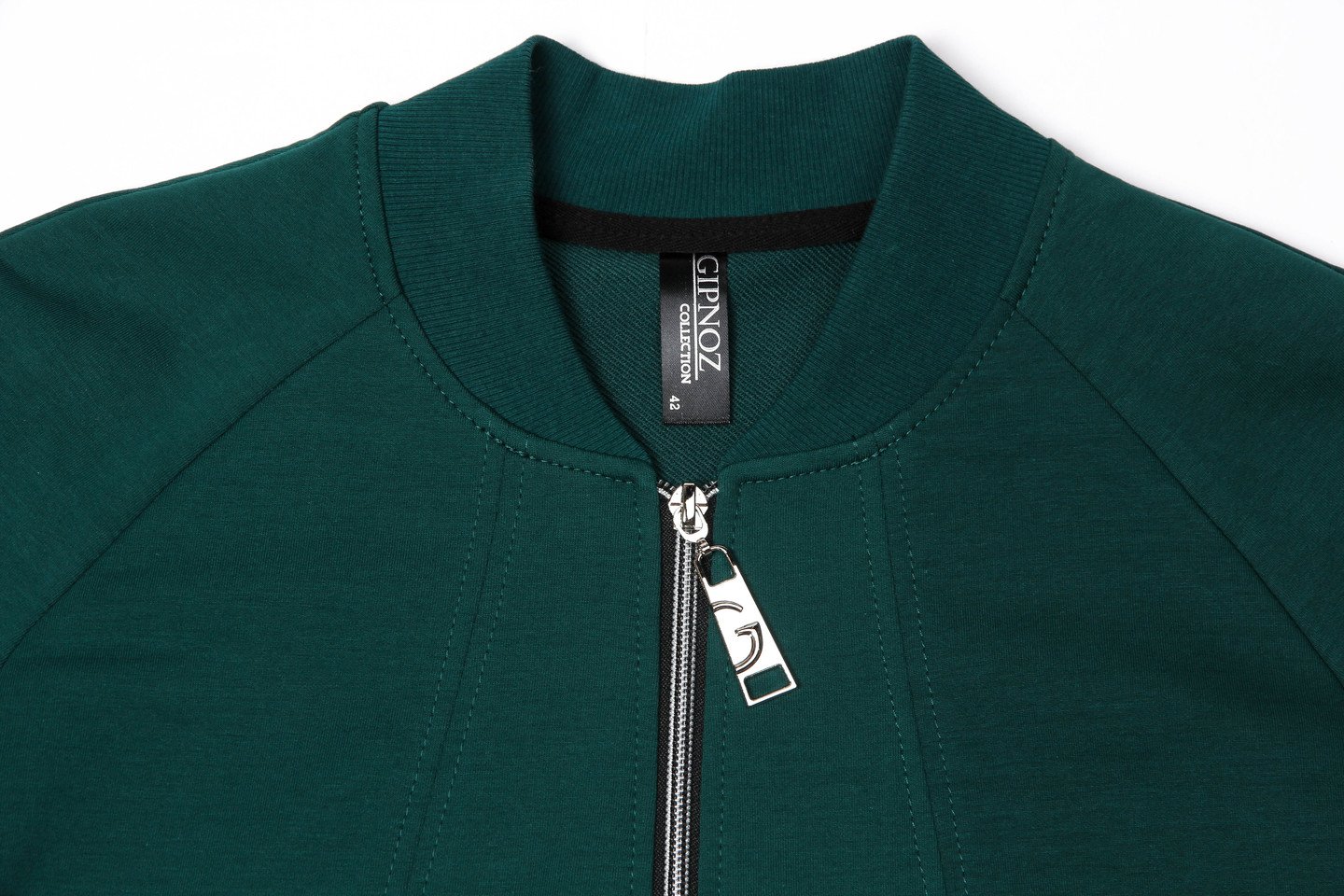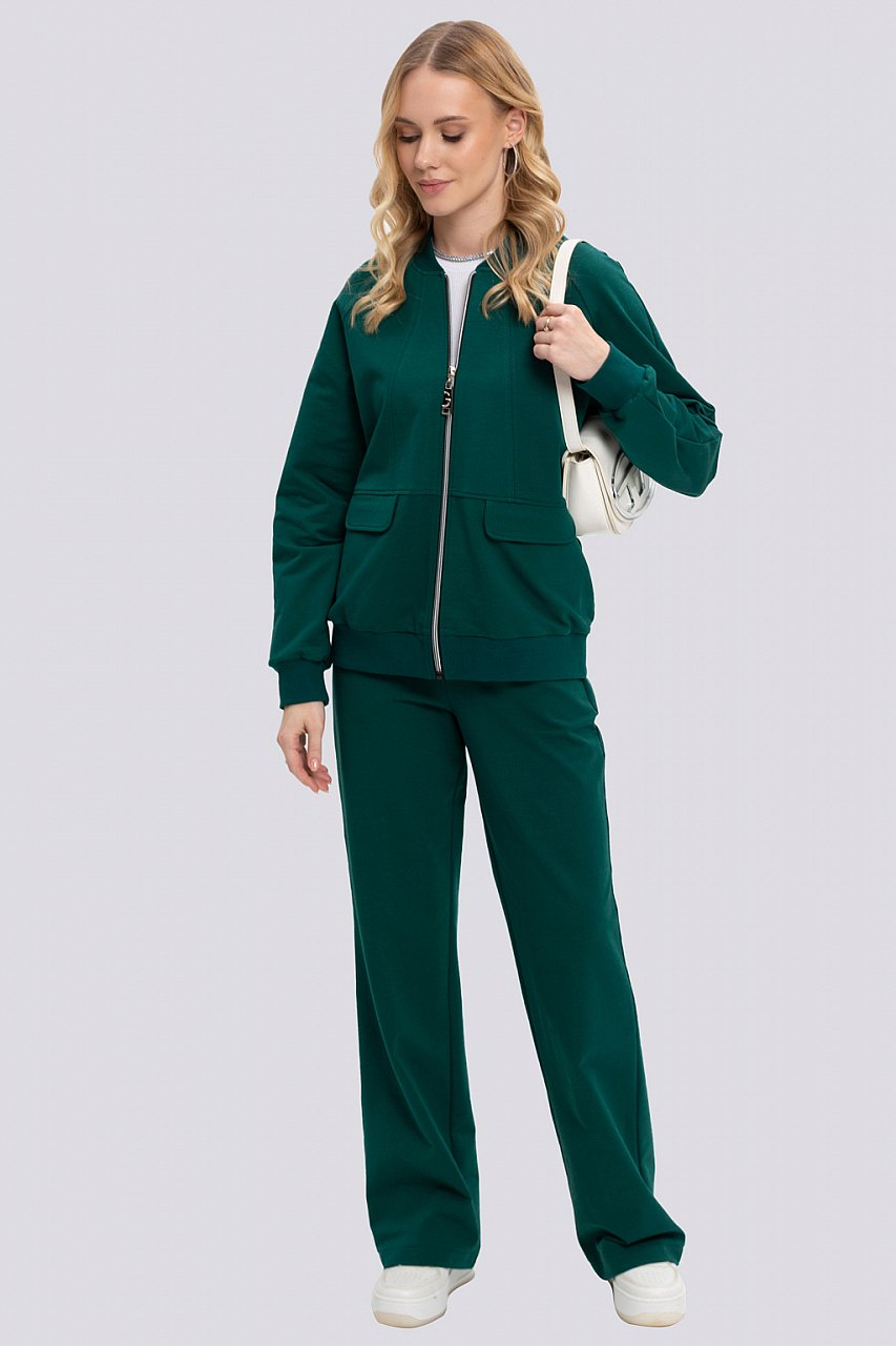 бомбер на молнии стала настолько универсальной, что женщины с большим удовольствием носят ее круглогодично. Карманы с клапаном, покрой рукава – реглан. Широкие брюки