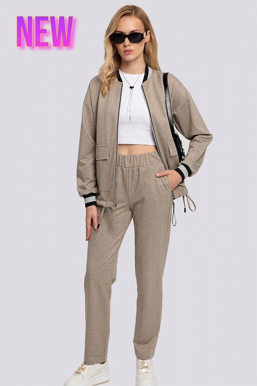 Брючный костюм из трикотажного полотна – идеальный вариант для повседневной носки!!! Удобство, мягкость, актуальные расцветки – мы постарались учесть все пожелания. Бомбер является лидером последних модных сезонов, может использоваться, как самостоятельная единица гардероба. Модель украшена деталями из трикотажного полотна. По линии низа бомбера – кулиса, она позволяет носить его, подворачивая, или слегка подтянутым. Накладные карманы очень актуальны в новом сезоне. Низ брюк может отгибаться. Состав трикотажа: 75% хлопок, 20% полиэстер, 5% спандекс.