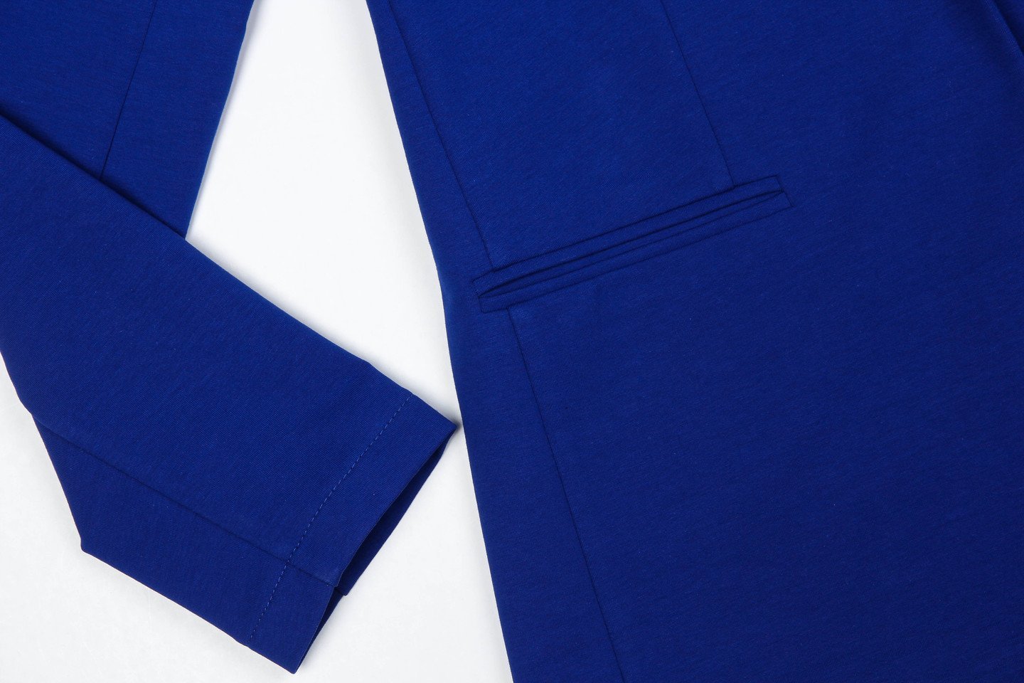 Классический костюм всегда был в моде, такие костюмы подходят всем, независимо от фигуры. Их можно носить с блузками, рубашками, для того, чтобы создать строгий образ. Для повседневного ношения можно надеть свитер или топ. Современные женщины готовы носить модный костюм с брюками по любому поводу и это правильно. Более того, женский брючный костюм входит в топ вещей, без которых представить себе актуальный женский гардероб в сезоне 2023-2024 будет немыслимо. Жакет с воротником английского типа, свободного объема, полуприлегающего силуэта. Застежка на пуговицу, элегантные карманы в рамку. Брюки широкие, стрелка застрочена, со шлевками, пояс частично с резинкой. Посадка брюк – высокая, на талии. В очередной раз пришла в моду палитра сочных оттенков – фуксия, ярко-синий, зеленая мята – наш выбор. Модель представлена из трикотажной ткани, что предоставляет максимум комфорта в носке. Ткань не мнется, не вытягивается и не выгорает.